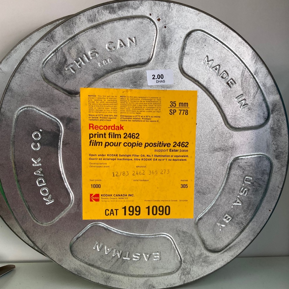 You can probably store a bunch of 36 exposure 35mm film cans inside a 1000 ft can. I have some small thin metal toolboxes that I use for that purpose while traveling, makes taking them out of my bag easy and offers a small amount of x-ray shielding for when you can't get a hand check.