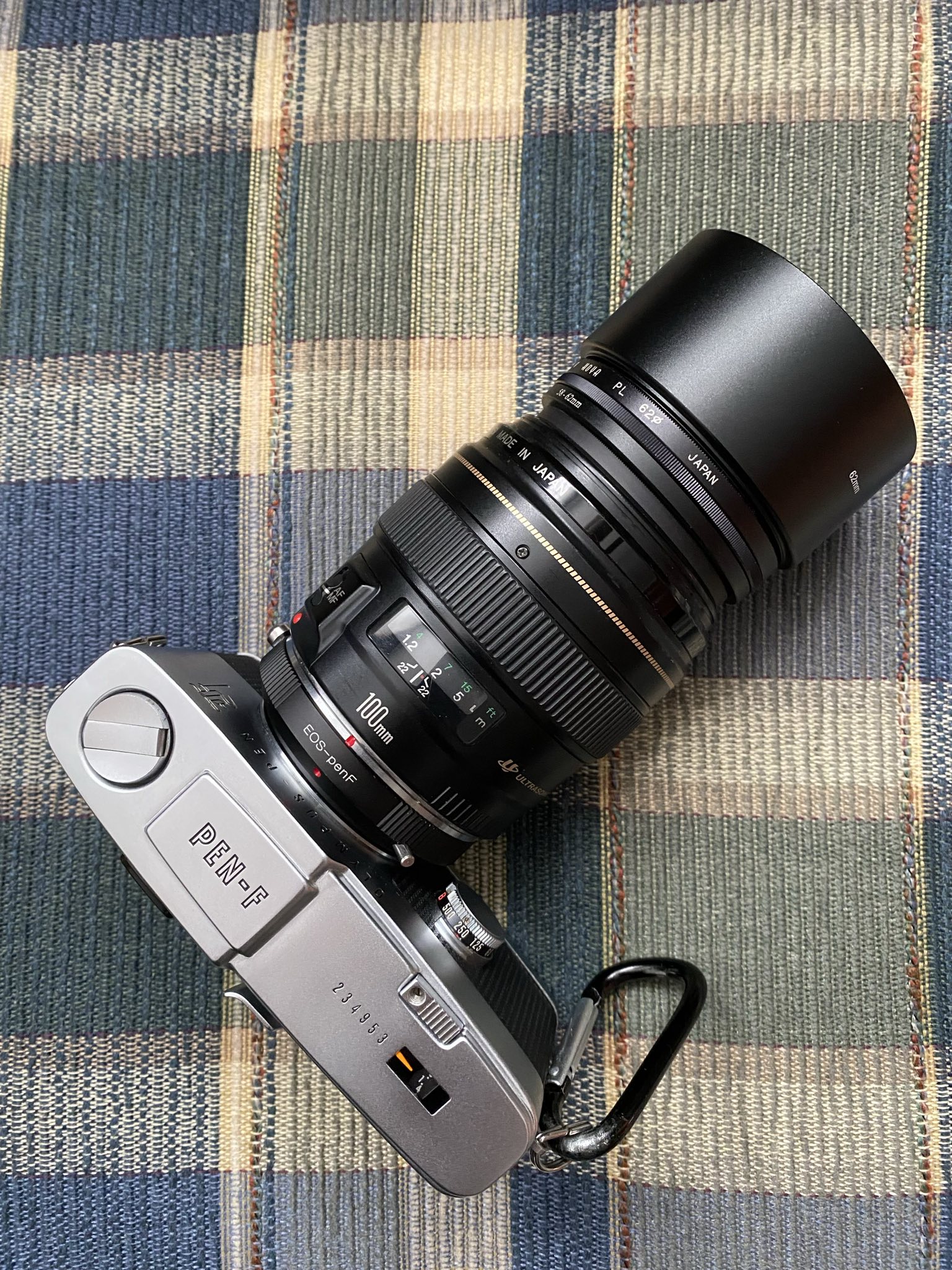 Today's photo outing will be pictures of water turbulence using Aerocolor 100. Pen F with Canon EF 100mm f/2, polarizer, cross screen filter, and hood. Lens stopped down to f/5.6 then dismounted from EF mount camera.