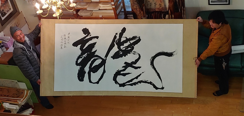 For the HARD 75th show, I actually had two pieces of Chinese calligraphy, including this 9-feet wide piece (one of the largest single word calligraphy). The word is "Dragon"