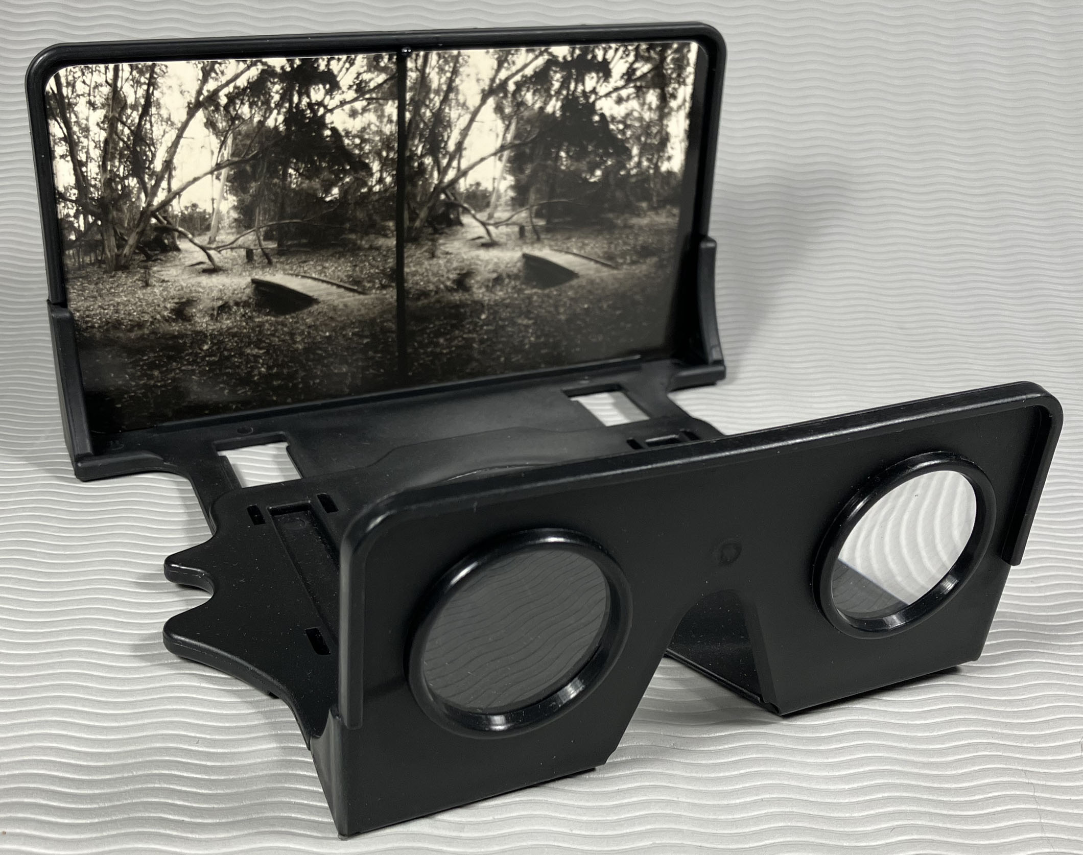 The print mounted in the stereo viewer, ready for 3-D viewing.