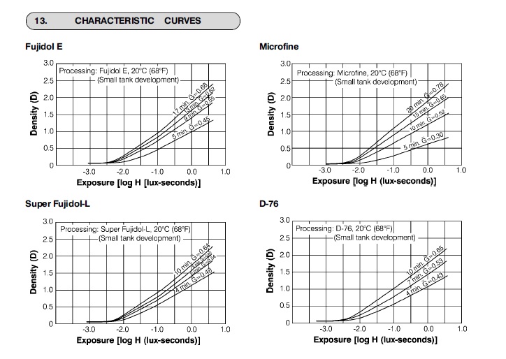 The set on the top is Acros I, on the bottom is Acros II. The Acros II curve set on the left is for Fujifilm Microfine developer.