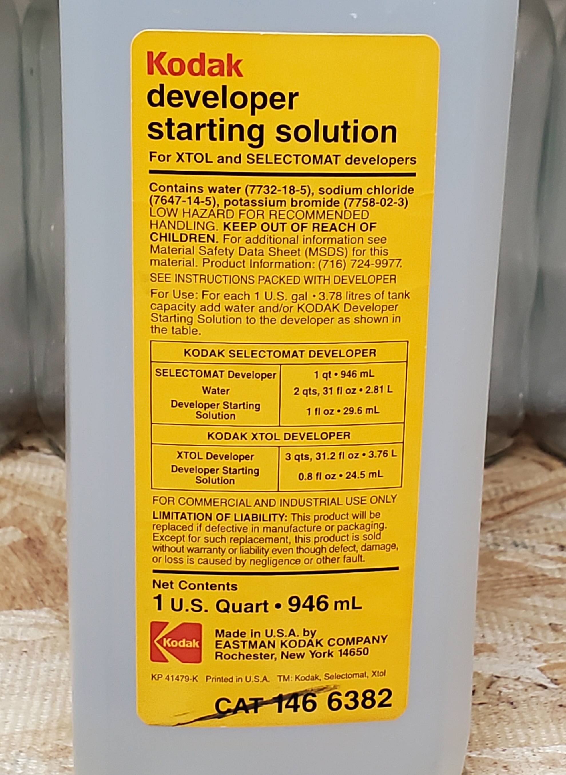 This is the elusive starter. 24mL per gallon of XTOL stock to season. It looks like it is just KBr and a little NaCl. I tasted it it tastes like KBr. I ran replenished XTOL for years, before that HC-110 dilution B. Not worth worrying too much about.