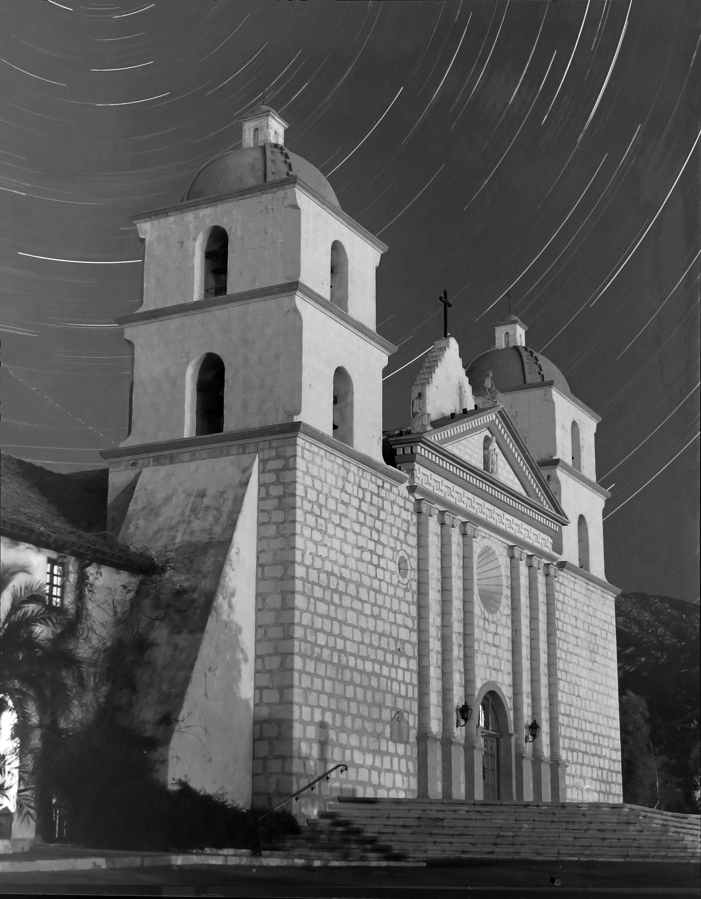 I have attached a few more images to share- the original Fairchild K-37 camera my lens came from, the camera being attached to the reconnaissance plane, and finally a 4x5 image of the Old Mission here in Santa Barbara that I took years ago while a student at Brooks Institute. It was a 1 hour exposure and was illuminated by star light and a streetlight 2 blocks away.