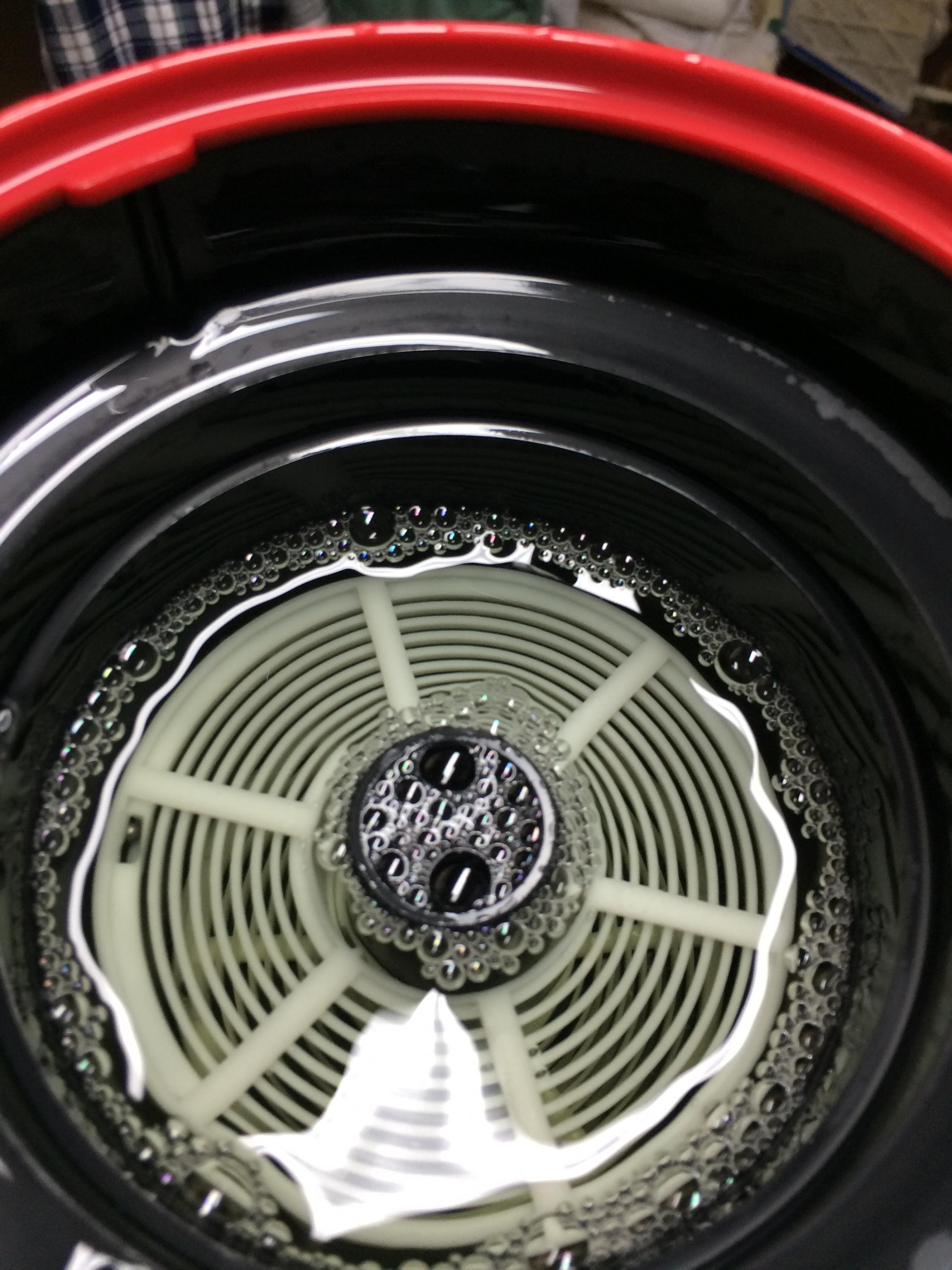 You have to leave some space, but cover the reel. If you see foam like that in the photo, then something is wrong! If you get uneven development, then something is wrong!