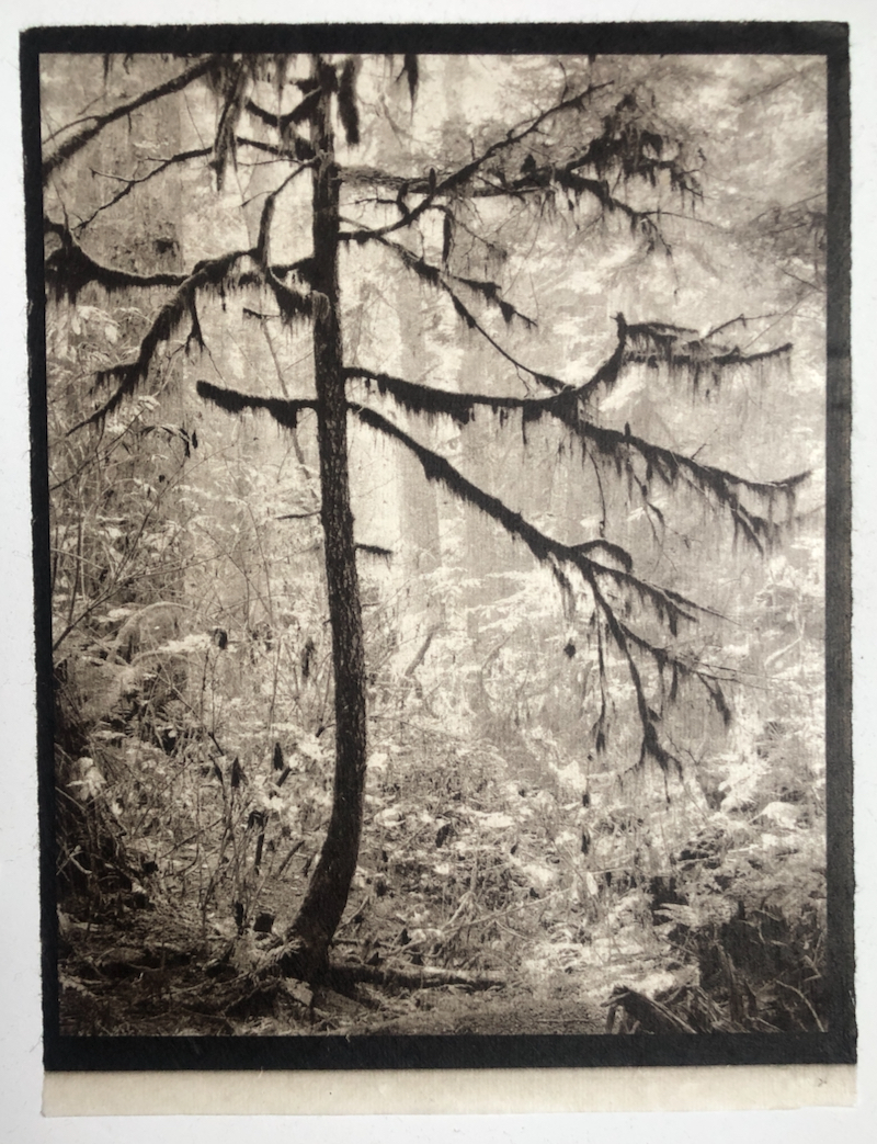 The photo of this print was taken with an iPhone, so jacked up quite bit in saturation, contrast, etc...there is good Zone III texture in the prints tree trunk and the higher tones are far subtler. Warmth provided by 21gsm Gampi.