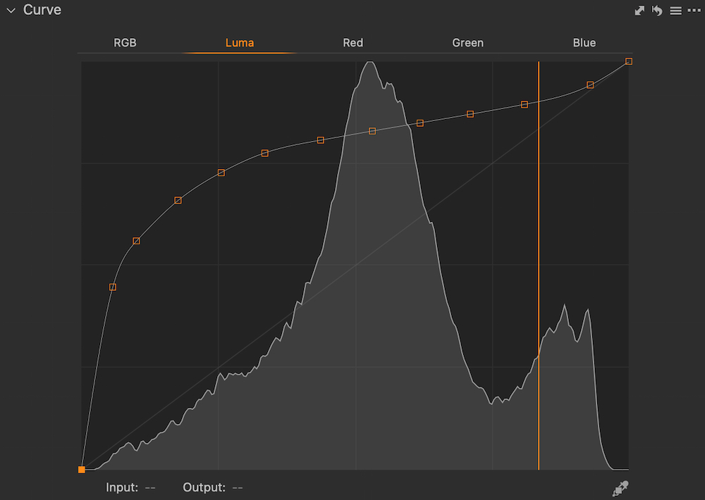 For anyone interested, here's the curve used in Capture One on the forest scene. (Histogram shown is not of the forest scene, but the curve is the same). This probably isn't my last curve (it's attempt #24 by eye because I don't have a densitometer) and will be marginally useful to anyone else...there are waaaaaaay too many moving parts!