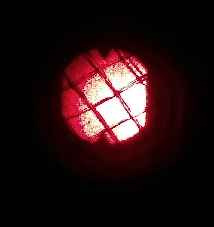 I placed a crosshatch pattern on the film so that I could illuminate it from behind with a strong light through the red window: