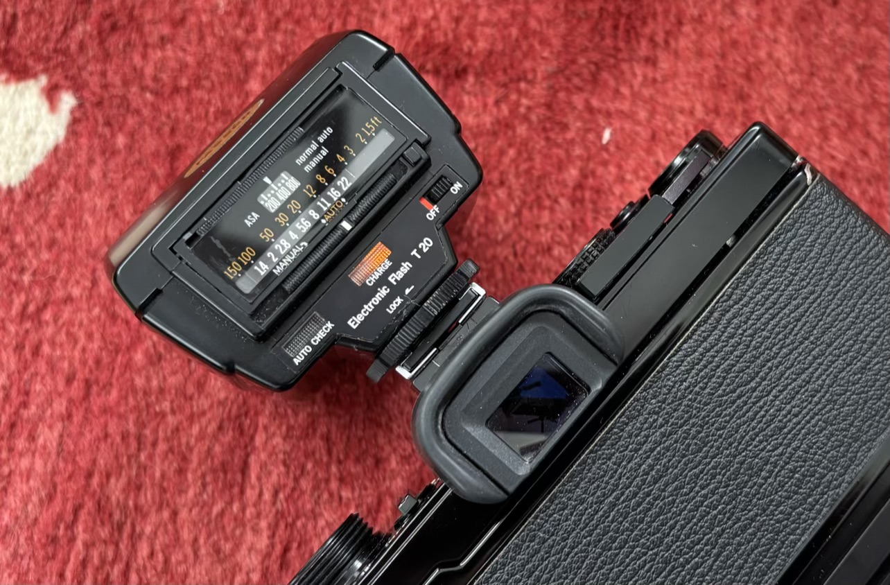 T-20 electronic flash that WORKS correctly. In near-mint cosmetic condition and comes with factory pouch and a fresh set of batteries.