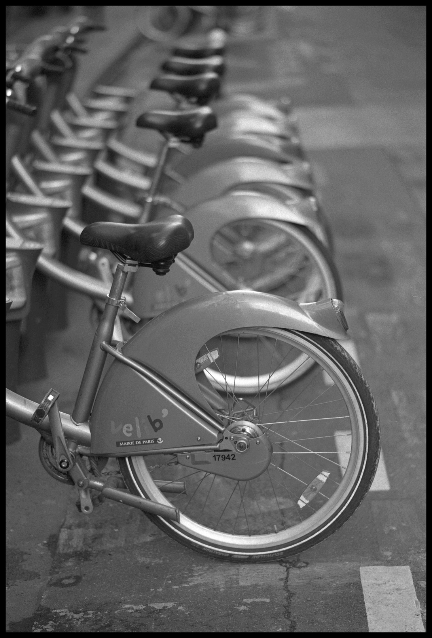 I've attached a couple of photos developed per the above guidance. The bicycle photo was shot with a Minolta w/85mm f/1.7 lens on Arista Premium 400 (Tri-X) at ISO 200. The store and the newsstand were, I believe, shot with a Nikon FM2 on Arista Premium 400. The photo of the church was shot with a Canon T90 w/28mm lens on Efke 100 rated at ISO 40.