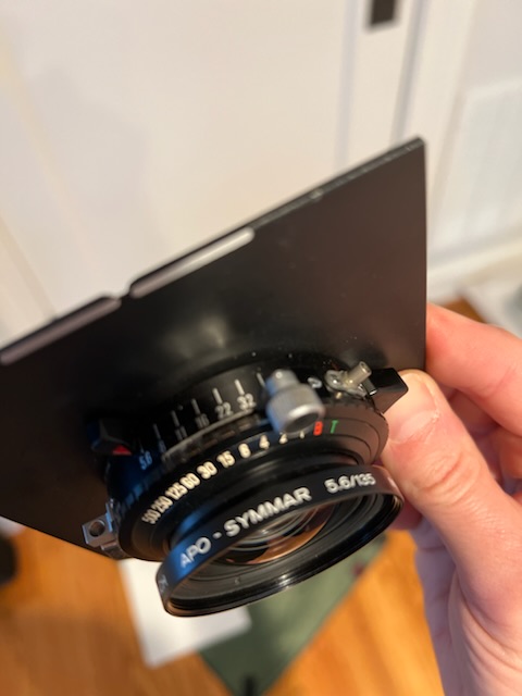 Schneider Kreuznach APO-SYMMAR f5.6 135mm MC COPAL No.0 4x5 lens in Shen Hao lens board. Shutter speeds sound accurate and had no issues in exposure. Three pieces of dust in lens. Does not affect image but reflected in price. Comes with caps, not sure if OEM. Package deal for 4x5 lenses, camera, film holders available. Just PM. Condition 8/10.