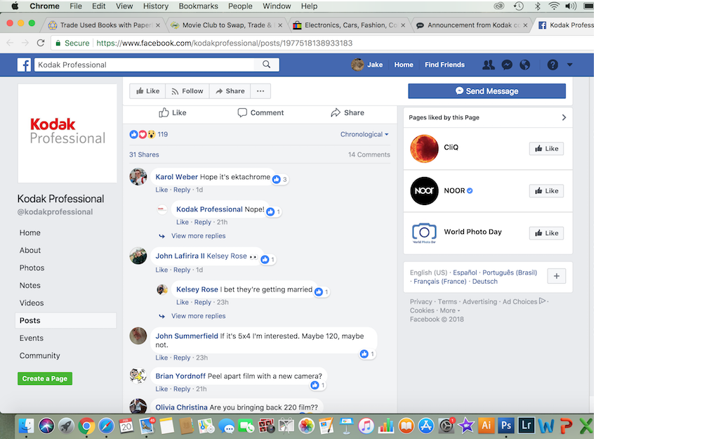 A Facebook comment: "They responded to a direct question on Twitter. Kodak: "Not Kodachrome or Ektachrome!"