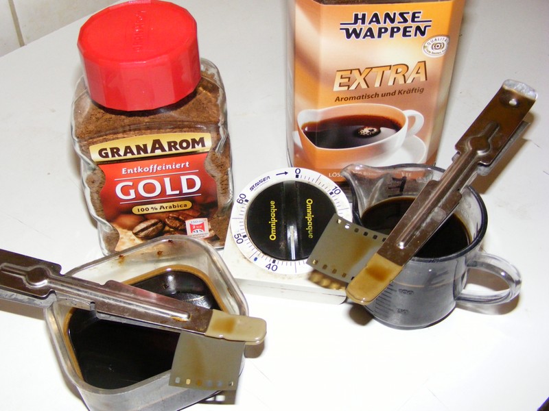 Coffee is a very complex substance and I believe that at last count there were several hundred compounds identified in it. The latest one being touted as a weight loss product is chlorogenic acid. It is also a substituted catechol as is caffeic acid previously mentioned on APUG. Being derived from catechol it would have developing capability. BTW, despite the chloro- in the name the chemical contains no chlorine. Its oxidation product is green in color and chloro- is derived from the Greek for light green.