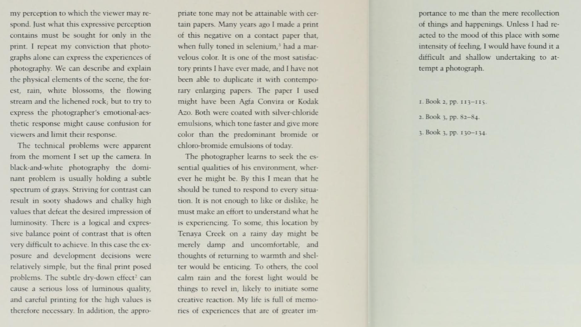 AA book, examples of 40 photographs, does not say much about f-number of type of film, etc.