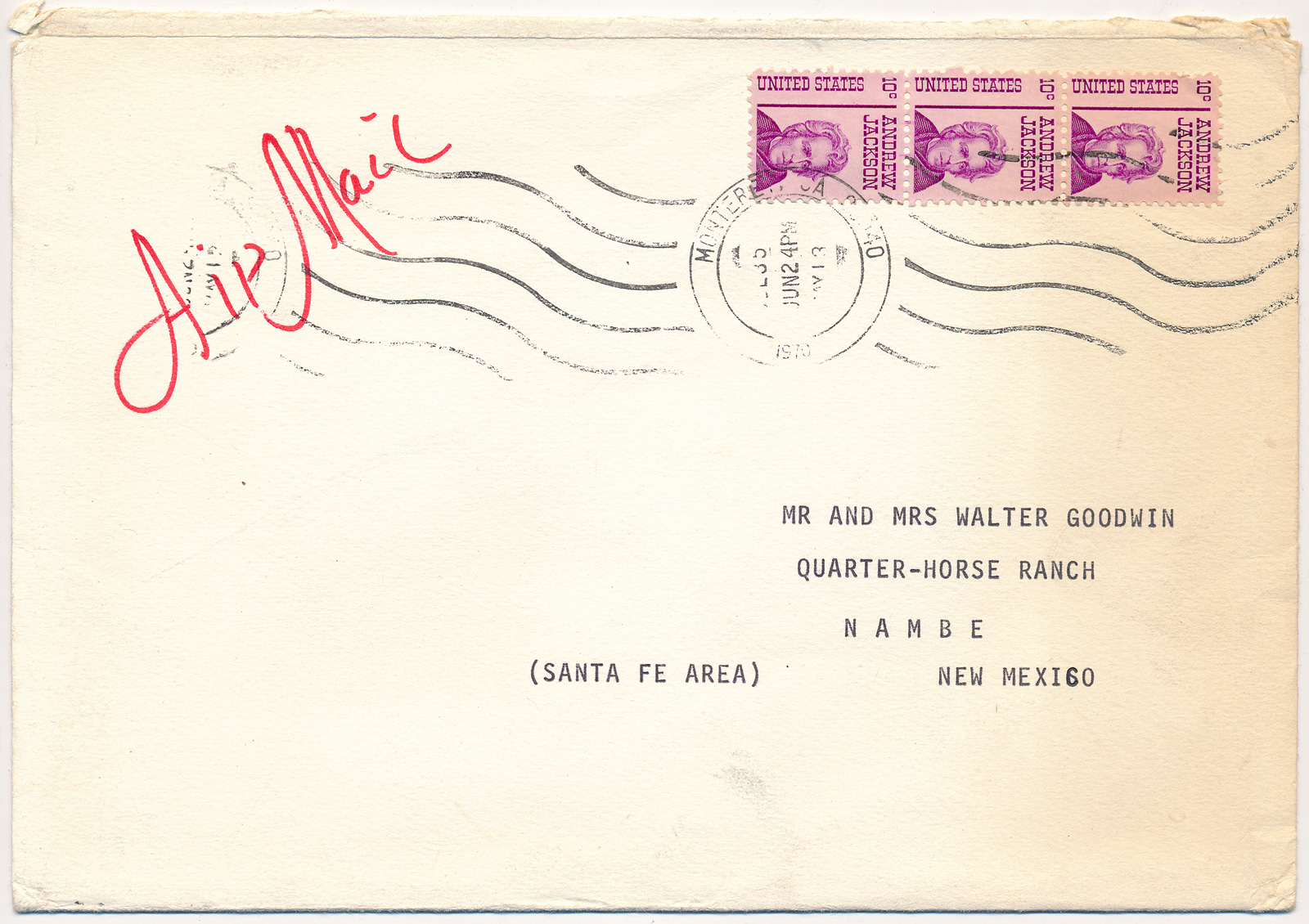 Included is a 5.25" x 7.75" halftone print from the layout of one of Ansel's books that he sent with the letter, still in the piece of folded cardboard that he used to protect it in the envelope. The original envelope features Ansel's handwritten Air Mail markings with the same flourishes as his signature.