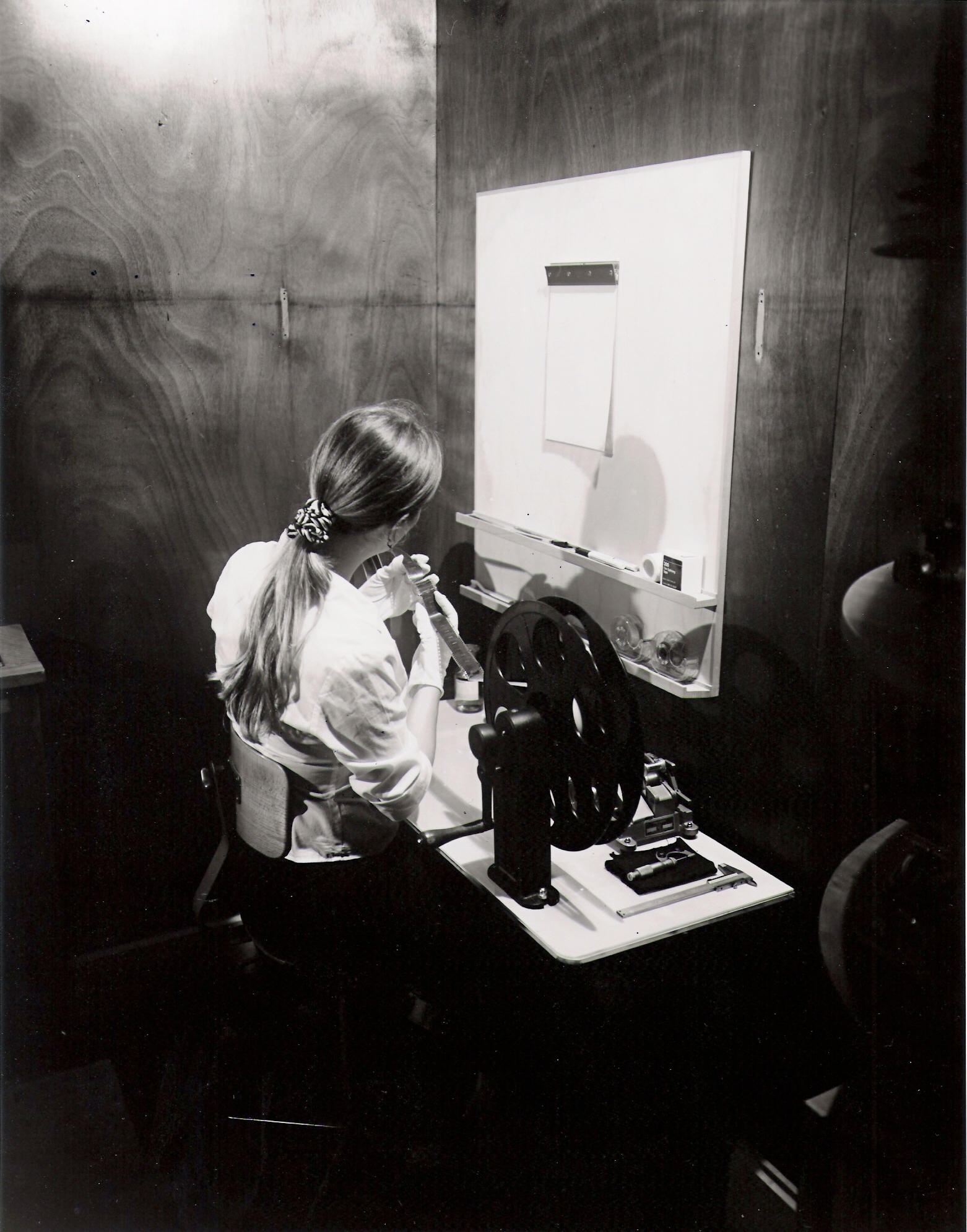 One got down on to the floor and loaded the lens mechanism suited for the task at hand from down below, through those doors. That could be done in subdued room light. Everything else was done in darkness.