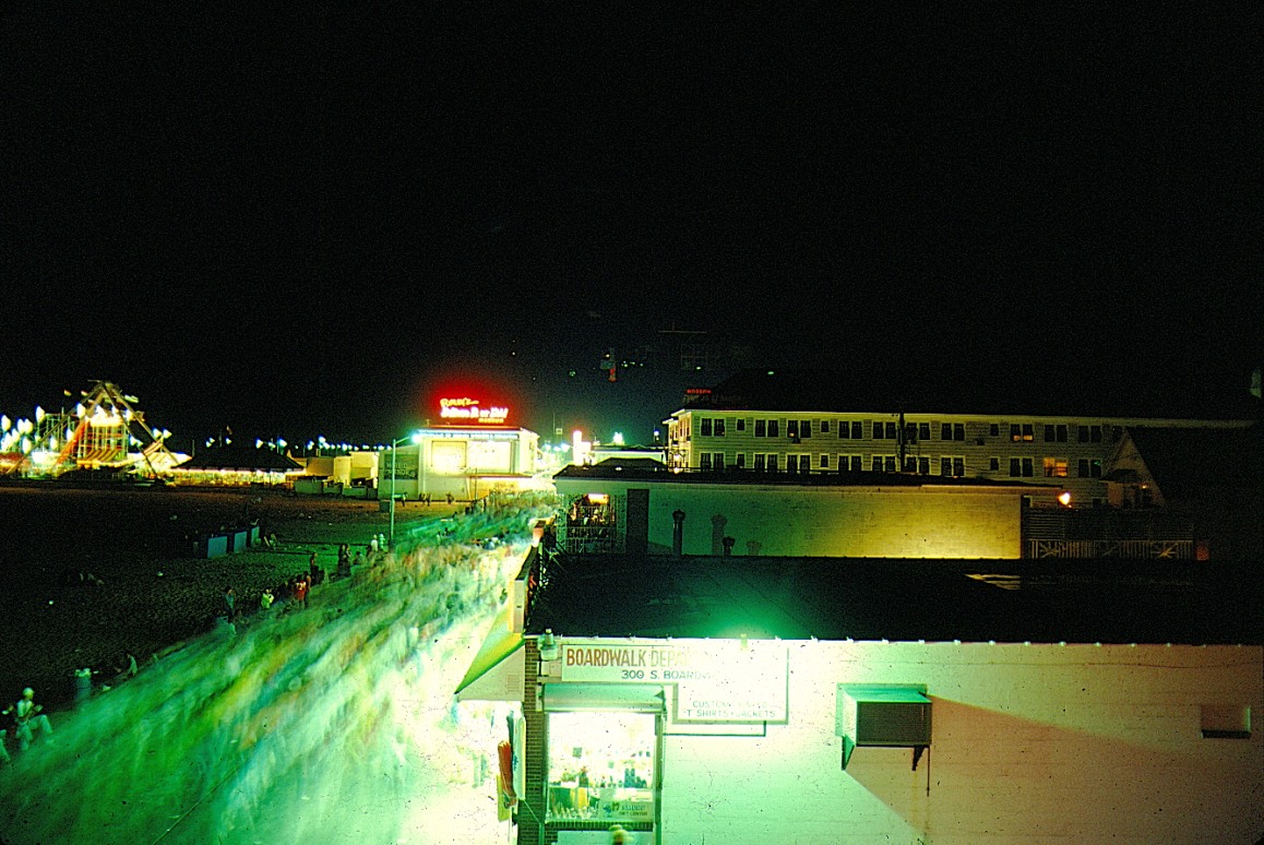 I used to take large quantities of hallucinogenics and ride the Harley (which I still have) on dark foggy nights. These images were taken July 4th 1982 from a hotel roof while on an unknown quantity of LSD. Canon AE-1 50MM f1.8 Kodachrome 25 exposure lost to history. Not recommending anyone do this (nor would I do it today) but it worked for me.