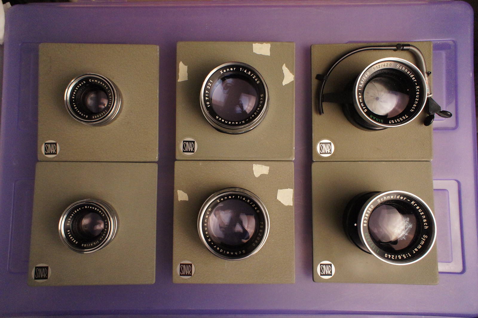 The box photographed next to the lens Seller posting was - Jos. Schneider & Co. Optical works / Kreuznach 2, Prototyp Schneider-Kreuznach Componon Tele Xenar, f: 4,5 – to - 32 / F: 240mm., Normalkorper - mount – shutter, nbr. of. Lens : #7107320, nbr. Of. Shutter: Rb362