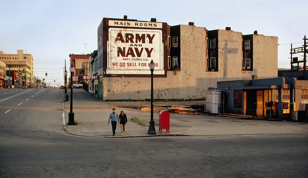 It's interesting to compare Friedlander's and Winogrand's relationship with the American vernacular landscape. In Winogrand, you sense people are the subject and the vernacular landscape is the scenery in which they evolve; with Friedlander, it's the opposite: the vernacular landscape is the subject and people are just another element of it, much in the same way as are cars or billboards.
