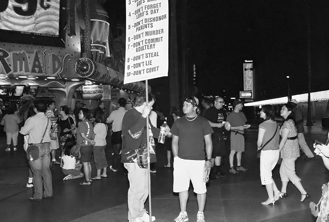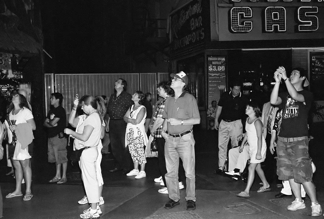 Last week when I was in Las Vegas on business, I kind of snuck away one night and went to the old downtown area, where there are all kinds of people who congregate to look at a huge overhead light show. I figured this was a place I could get a whole bunch of people all paying attention to something.