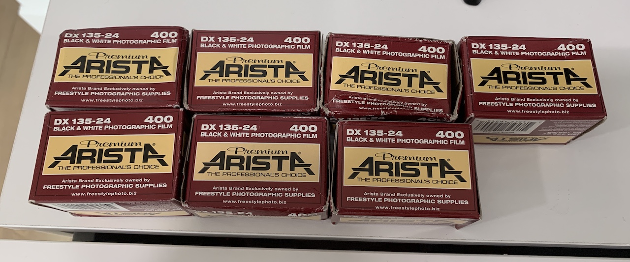 I am selling seven rolls of Arista 400 35mm film, 24 exposures per roll. The expiration date is 12/2014.