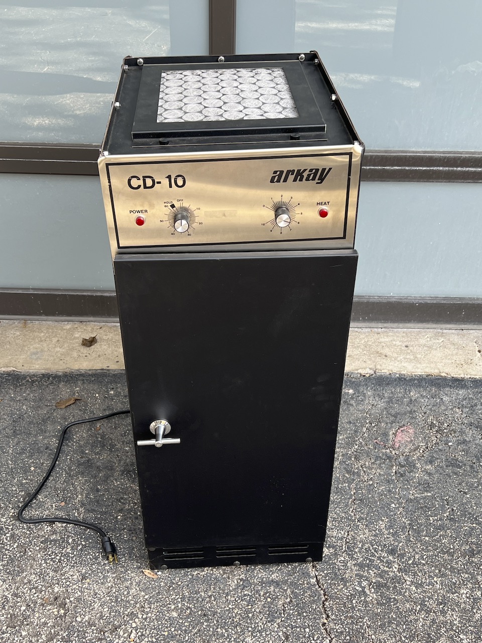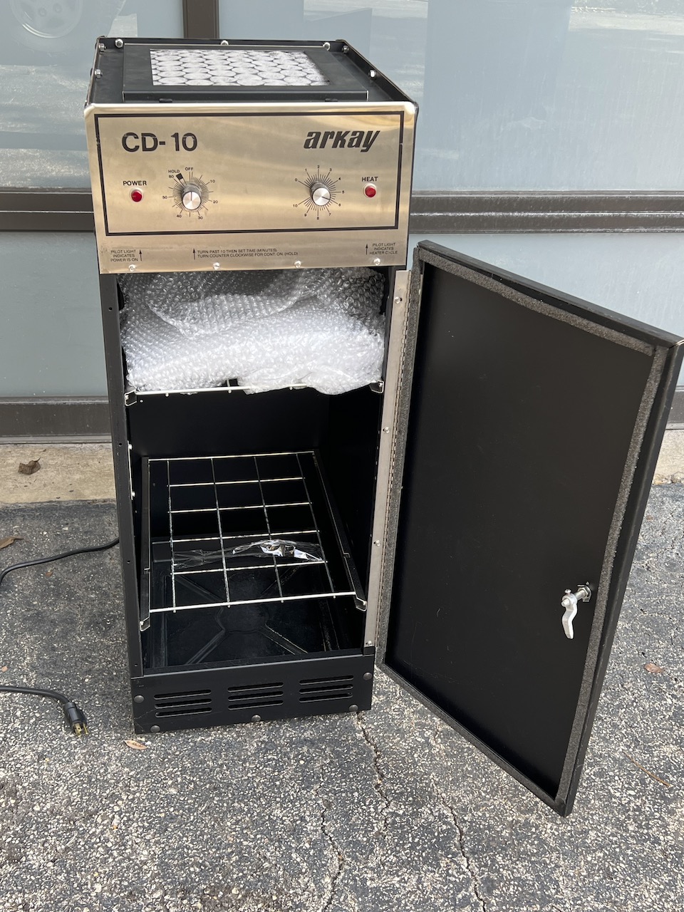 Specs are available at the link below. Works and includes the shelves. It has a few corner dings (shown) and a new filter. It works and blows warm air. 110VAC power. $450