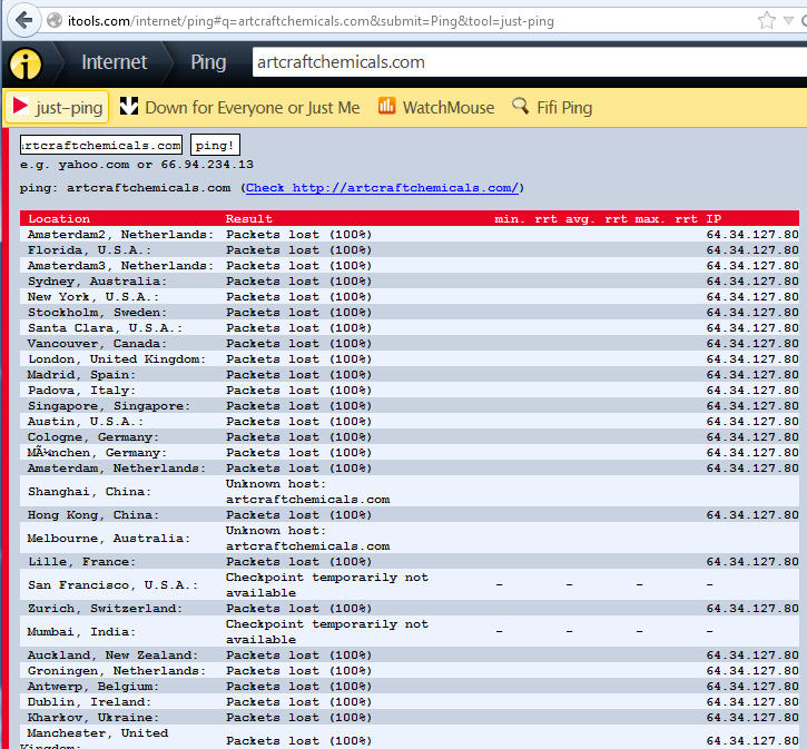 Artcraft Chemicals site down?