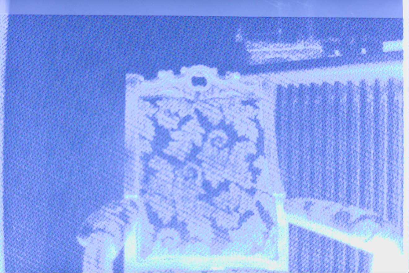 Ah, what I was taking for empty space was the yellow. I don't think what's going on the label stock quite matches the image file, though; possibly getting artifacts from too-fine image features relative to printer resolution. Maybe print with larger pixel size? Your image color will be coarser, but you should get a more consistent filter.