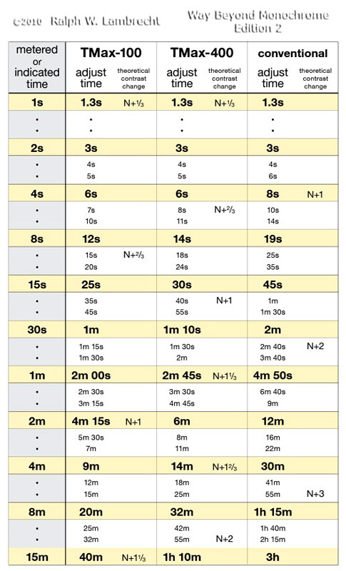Hi 5stringdeath - I have just posted an article on reciprocity by Phil Davis for our D-Max Newsletter. Please note exposures longer than 1 second, reciprocity begins. Phil Davis loved night photography and I think that is why he did all the reciprocity testing in that article. At all the BTZS workshops Phil and I did together we always did night photography one night of the workshop. To me it was one of the most fun time at the workshop, especially seeing all the well exposed the negatives were.