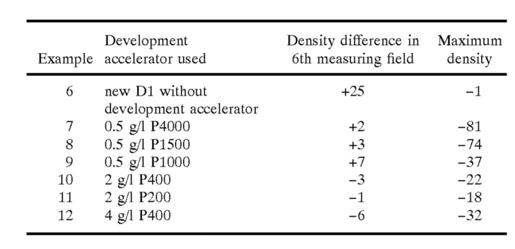 "Surprisingly, it has now been found that the use of 5-methylbenzotriazole in combination with polyglycol P400 and hydroquinoneSulphonic acid resulted in the desired gradation curve and in usable image results."
