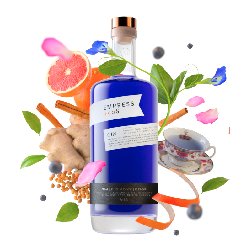 This gin and McHenry's Butterfly Gin use botanicals from the same plant that Phenolphthalein is derived from. Pour some of this in a glass, it is dark blue. As tonic water is added it changes to purple [violet] around pH 7.0. Add more tonic water and it turns pink as the drink becomes acidic.