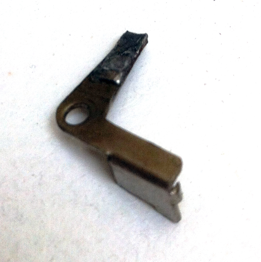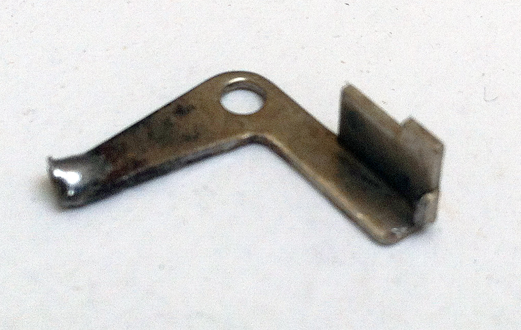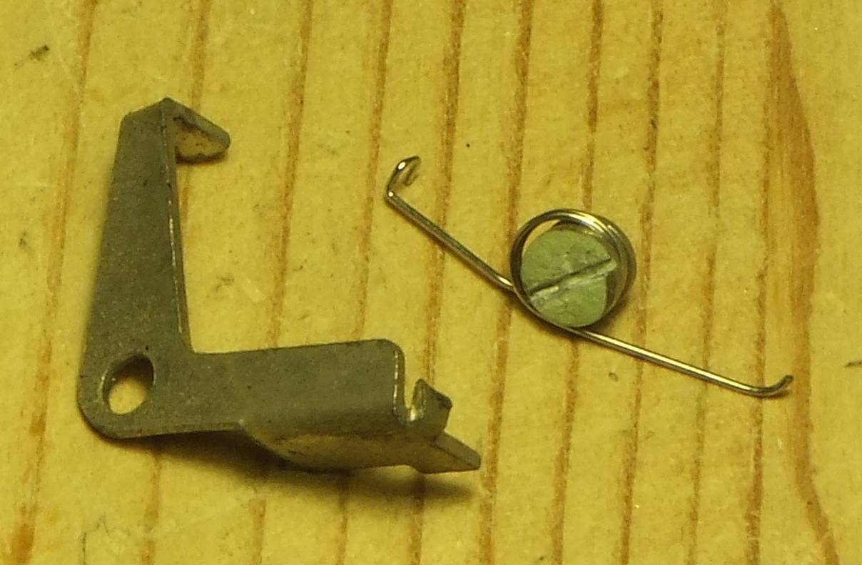 Look carefully at both the spring and the lever. Repairing the lever is quite possible, but if the spring isn't right, that's a much bigger problem. Notice that one end of the spring is bent into a hook shape. The picture 'Suspect. jpg' is the tab that engages in the cam that provides the 1/3 frame advance; is yours the same?