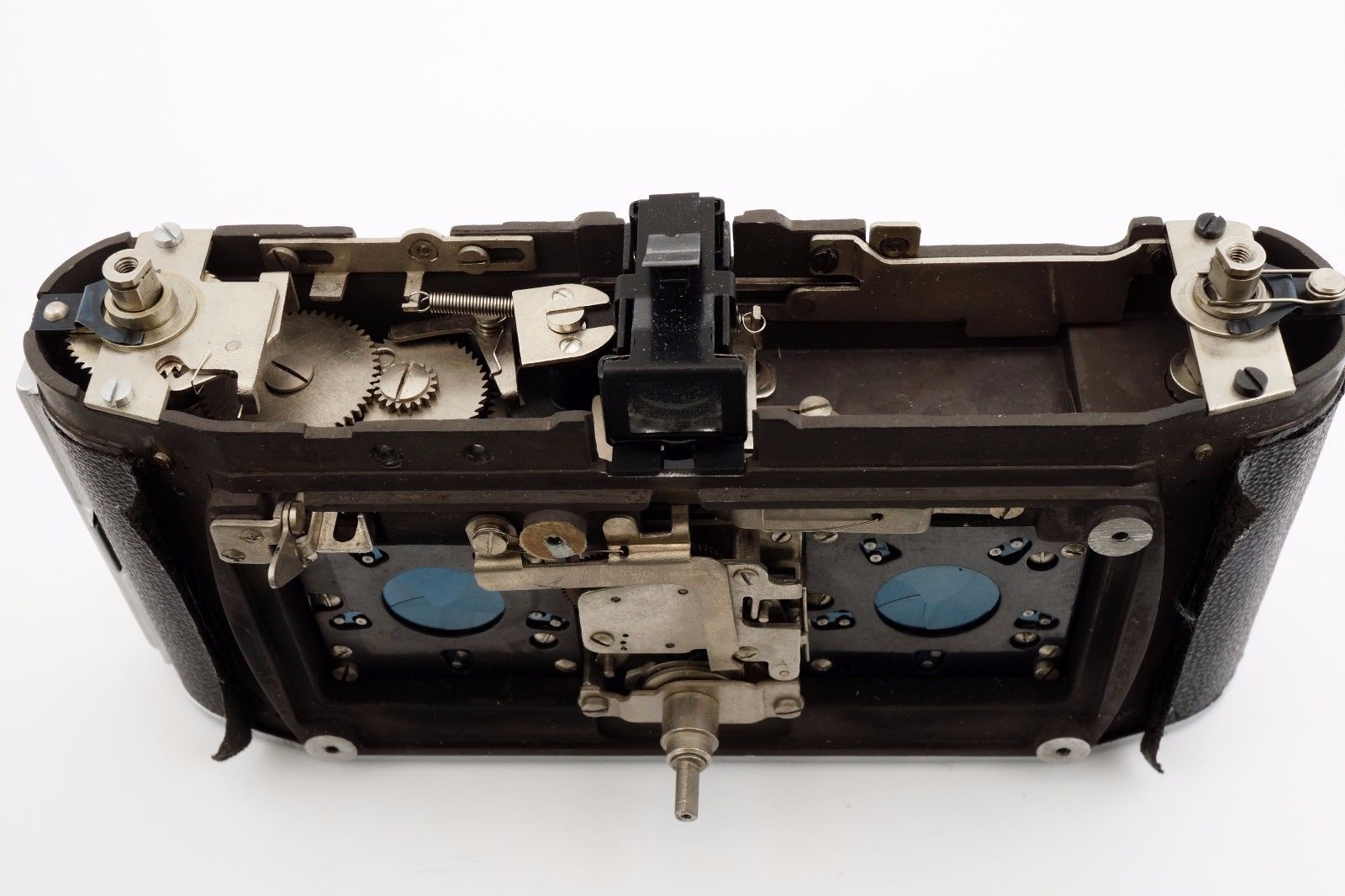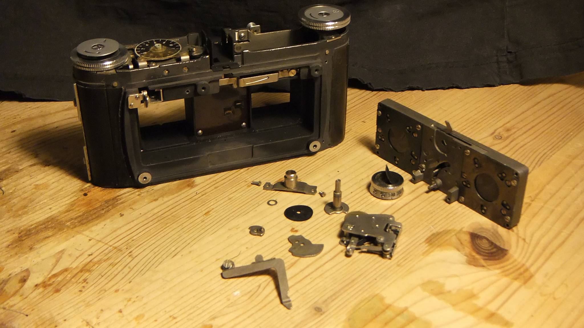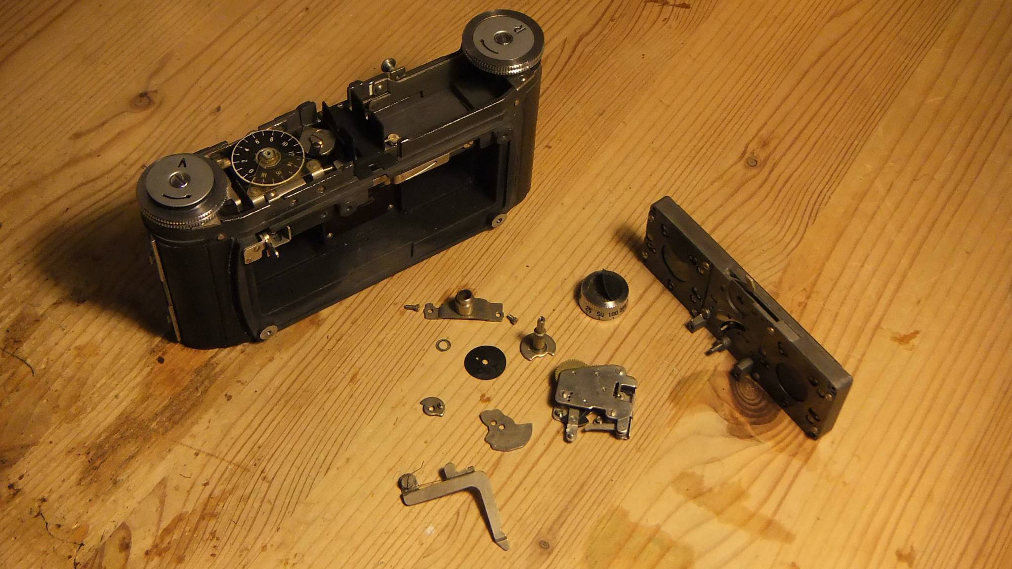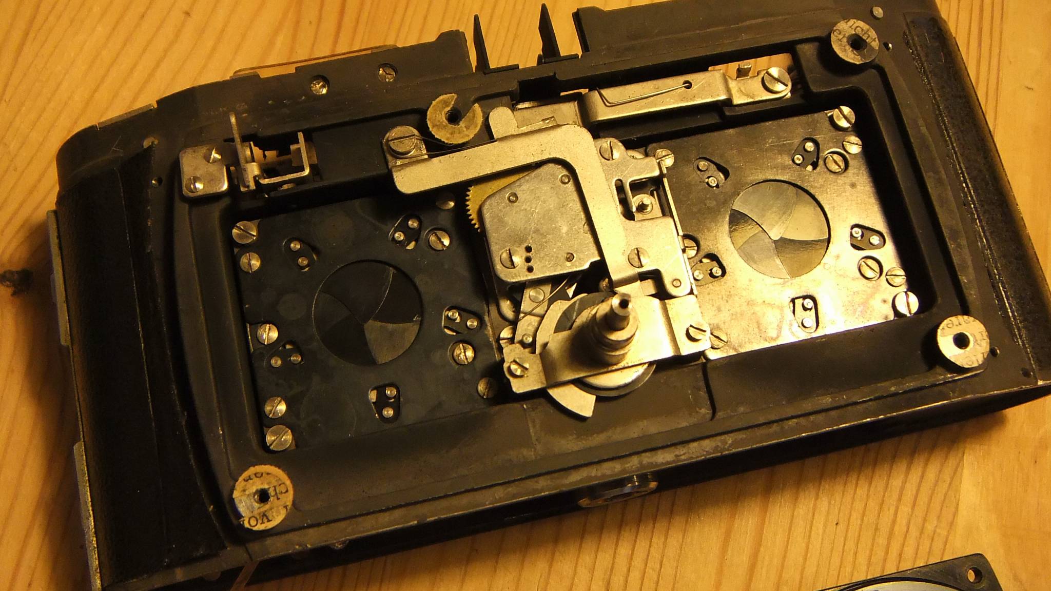I've put in brackets what the times should be. Each measurement is an average of three. So apart from that 1/5, not too bad for a 50+ year old camera. The exposures from this camera always seemed correct. (Luckily I never used 1/5.) I made the measurements so that after re-assembly I can measure again and I'll know if I've got everything right.