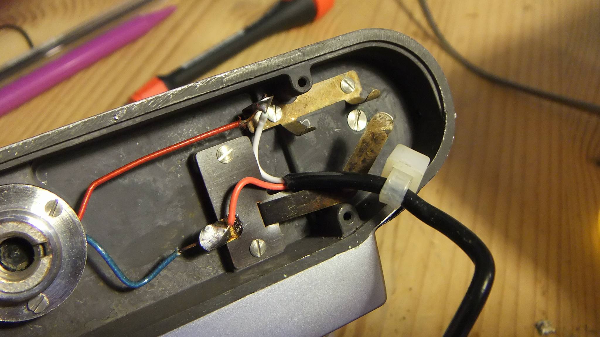 I finally took some pictures of my lever. My phone doesn't have macro, but the problem is visible. I believe the repairman did a so-so work with it. Here it is: