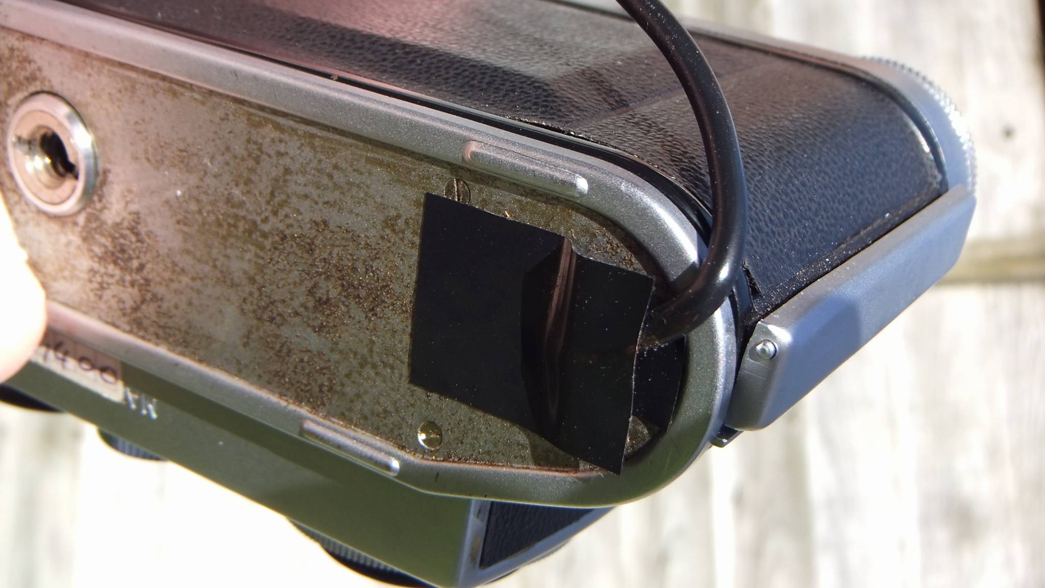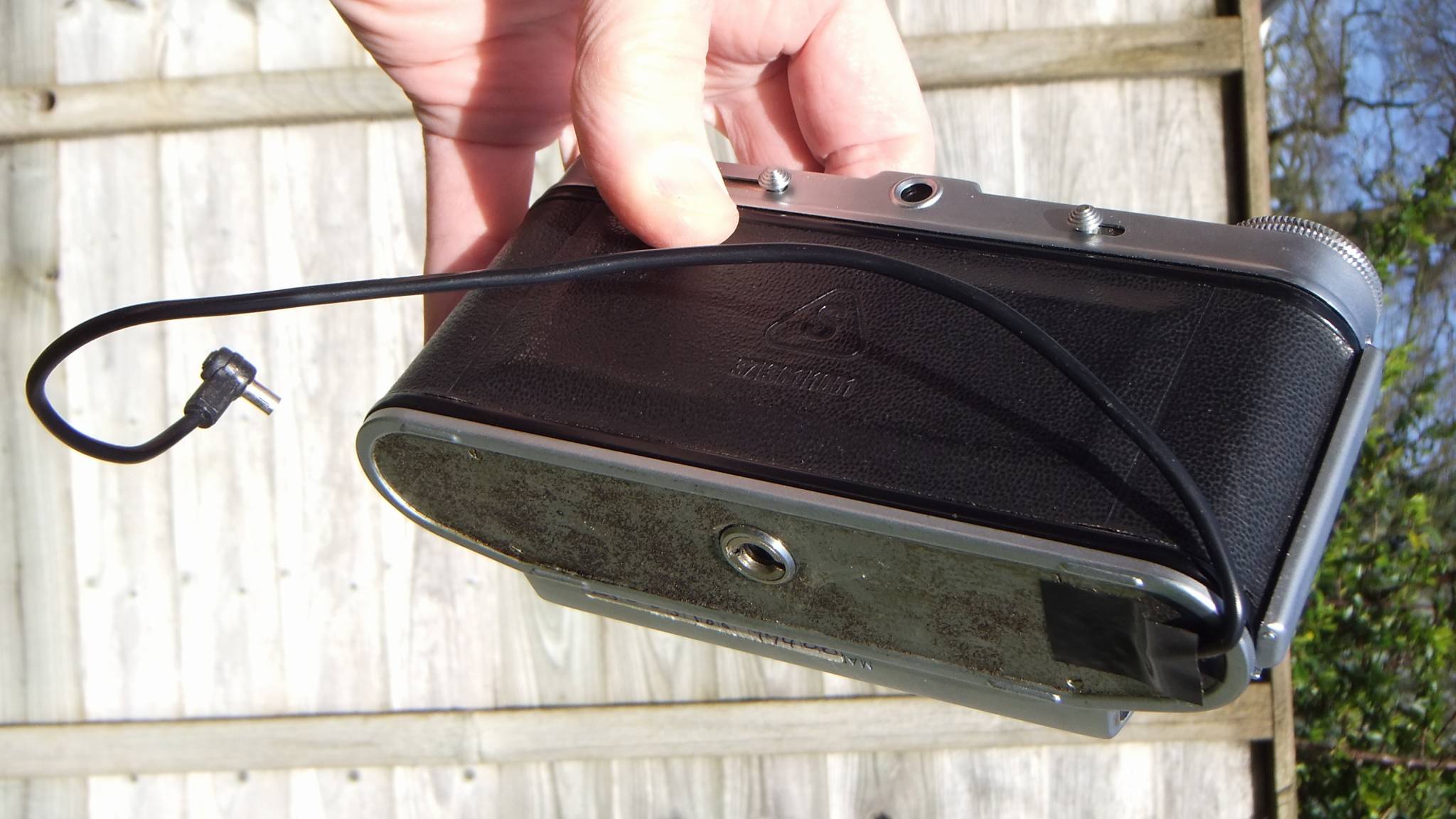 A slight change of subject here. Attached are some photos of how I've been using flash with my Belplasca for the last three years. This mod has the attraction of being completely reversible. I removed the bottom of the camera and soldered a PC cord to the two solder joints there. The existing X socket has to be removed (and kept somewhere safe) to allow the PC cord through, and the cord can be routed up through the ERC to the top where it can be plugged into the flashgun. The ERC can be closed if the PC connector is positioned just in front of the top cover as shown. The tape on the bottom of the camera looks a bit messy, but it's covered by the case! As you will notice, the PC cord has a PLUG on and not a socket like was originally in the bottom. This is because the PC connector on modern flash guns is always a socket? Seems the wrong way round to me, but that's how it is. Of course this doesn't solve the problem of the Belplasca's cold shoe shorting out the hot-shoe contact of modern flashguns. There were some flash guns where you could switch off the hot-shoe X contact, but the modern ones I've come across don't do that. I can't abide those wobbly hot/cold flash adaptors, so I just took the bottom of the flashgun and un-soldered the hot-shoe contact. This again is a mod that's completely reversible.