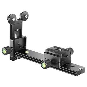 What I use, made in my own shop, is a double mount to both the camera body and telephoto lens collar. Then this is directly bolted to the top of either my Ries wooden tripod or same large CF tripod as used for my 8x10. I tooled it out of a piece of 1x3 rock maple, which I laminated to black Garolite phenolic, and then treated with penetrating marine epoxy for total dimensional stability. And I added a bit of micro-rust and crud to the solution so that the device would match the vintage weathered look of my veteran maple Ries tripod, just for fun.