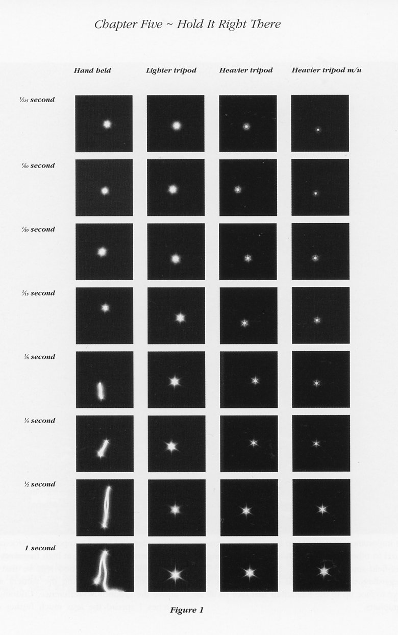 Years ago, Barry Thornton in his book Edge of Darkness, did a test with a 35mm camera and 50mm lens, comparing sharpness at different shutter speeds hand held, with a flimsy tripod and with a sturdy one and then the sturdy one using mirror lock-up.