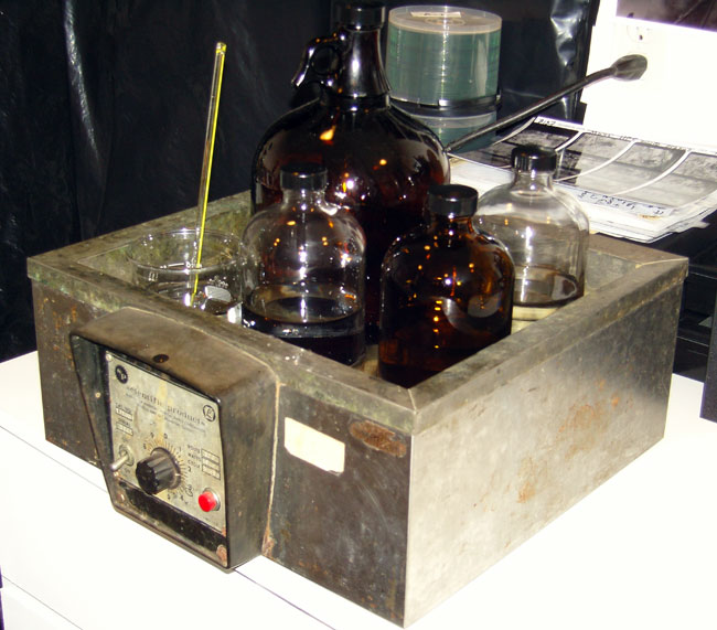 • Another alternative is a Jobo TBE tank which is a big plastic tub that holds 12 1 liter Jobo bottle and has a thermostat. Works very well for holding volumes of developer or "dilution water" for bigger developing runs. They sell on Ebay but are usually very expensive.