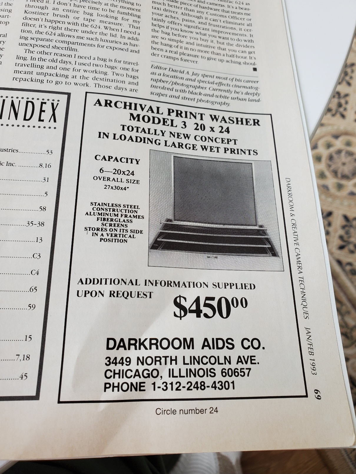 Many years ago, I lived in Chicago. Darkroom Aids was an absolute toy store for photographers. Beyond the usual new stuff like paper, chemistry, lenses, sinks, etc., they were an absolute goldmine of all things used for the the darkroom. I bought my push-up Omega DII with a 150mm Schneider Componon, Lens cone, and carrier for $300 there ! Better still, they had a wall mount turnbuckle for it. I still use it to this day. I also bought an 8 foot stainless sink from them, and the store manager delivered it to my home. That is still in use today as well, though nowhere near Chicago.
