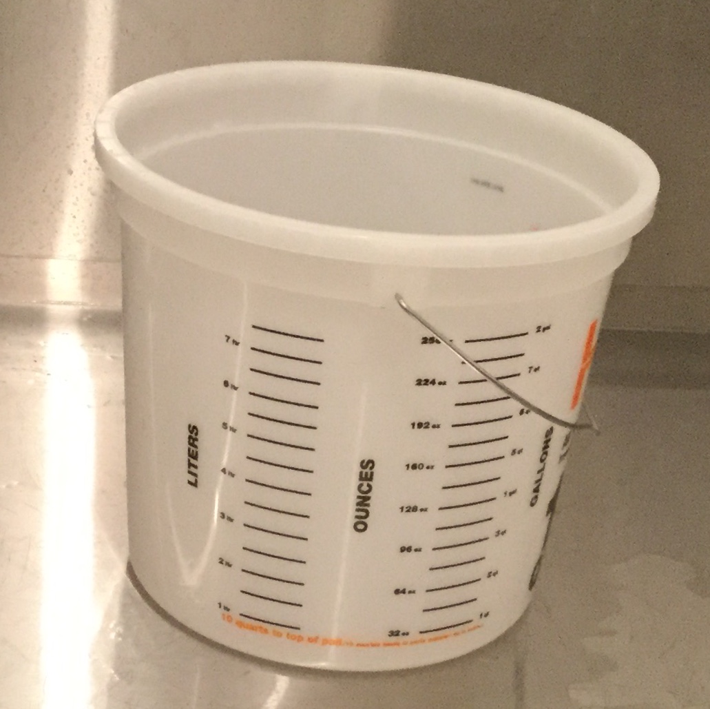 I went to Home Depot recently to find a bucket for mixing the 5 liter batches of XTOL. I found this graduated bucket in the paint department. The markings are pretty accurate, too.