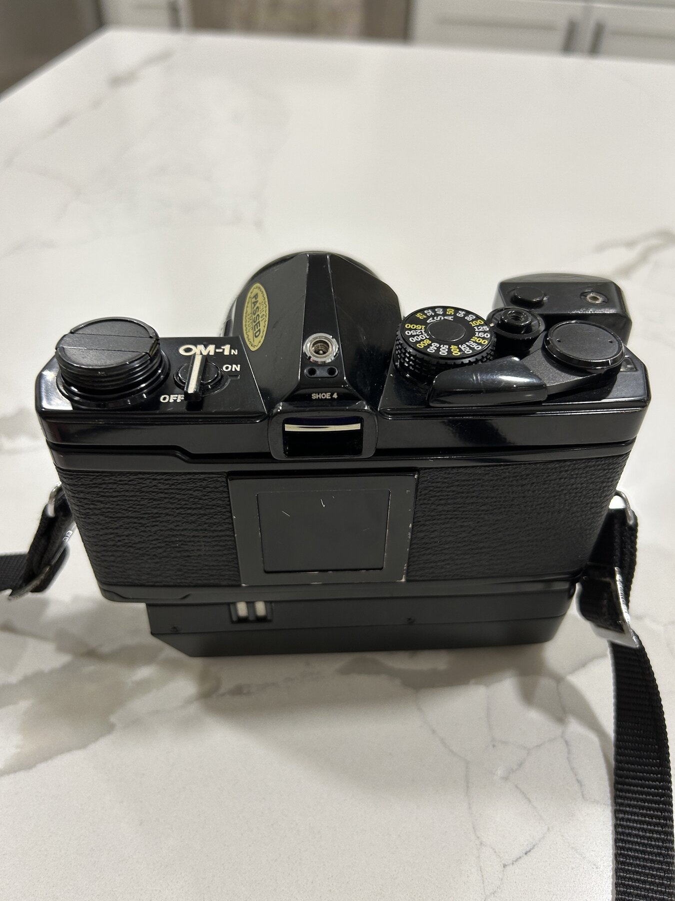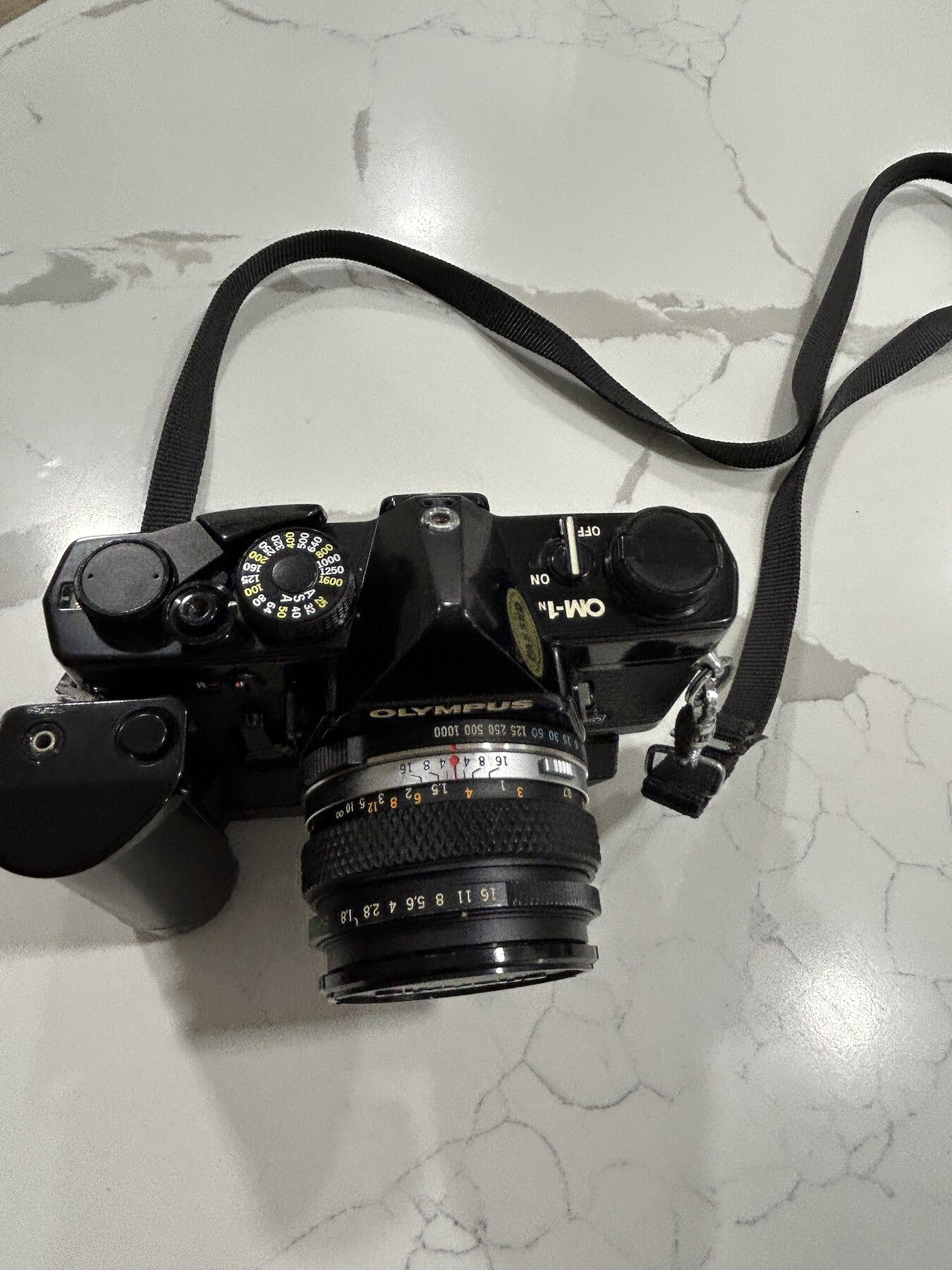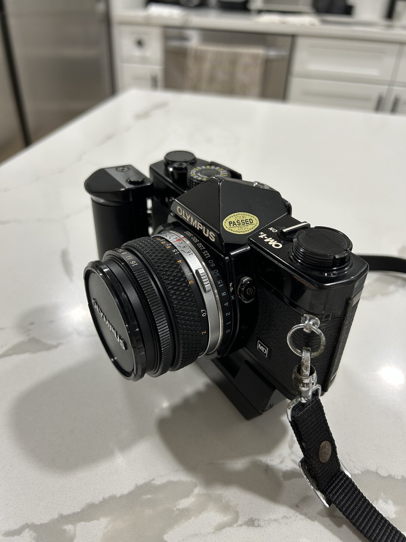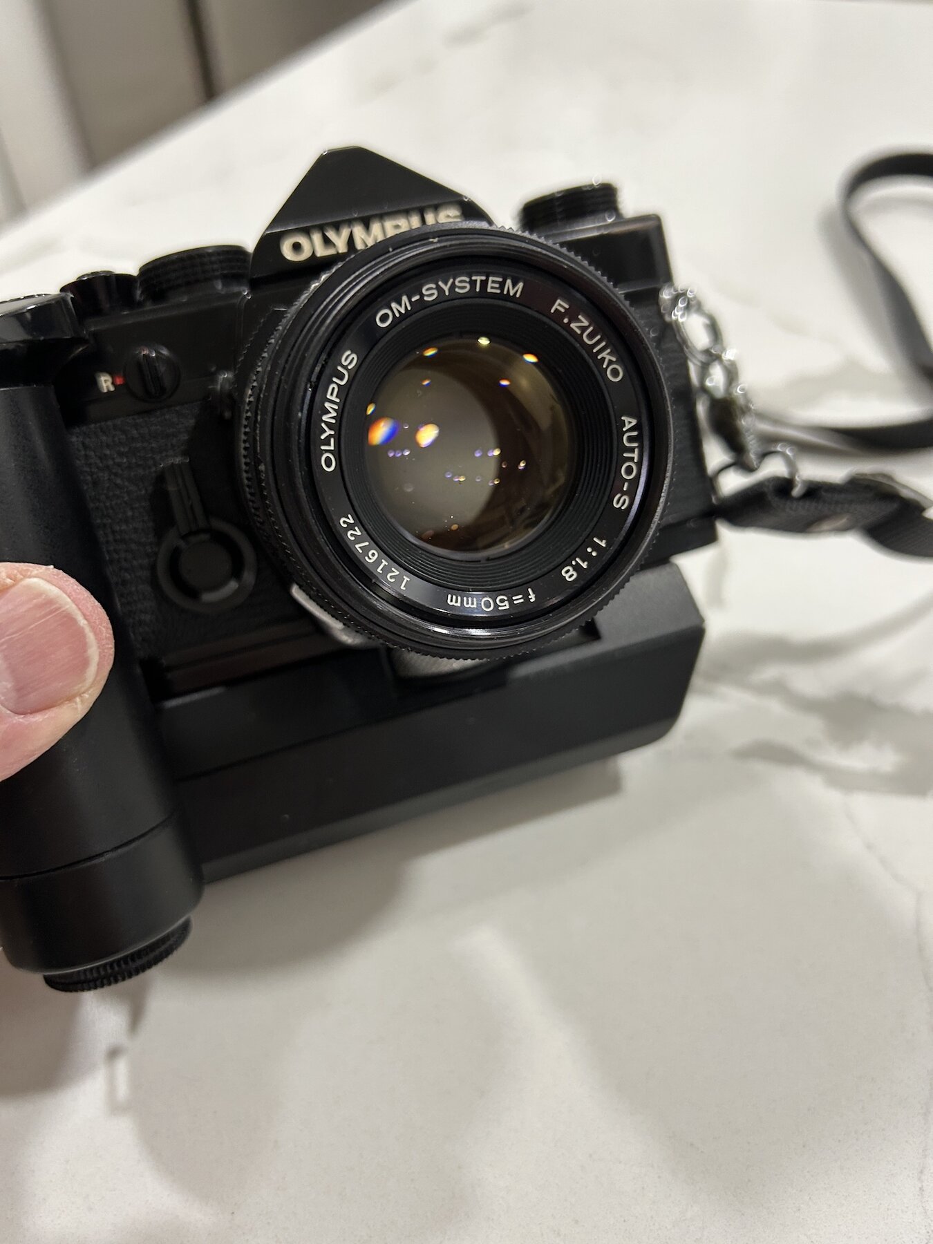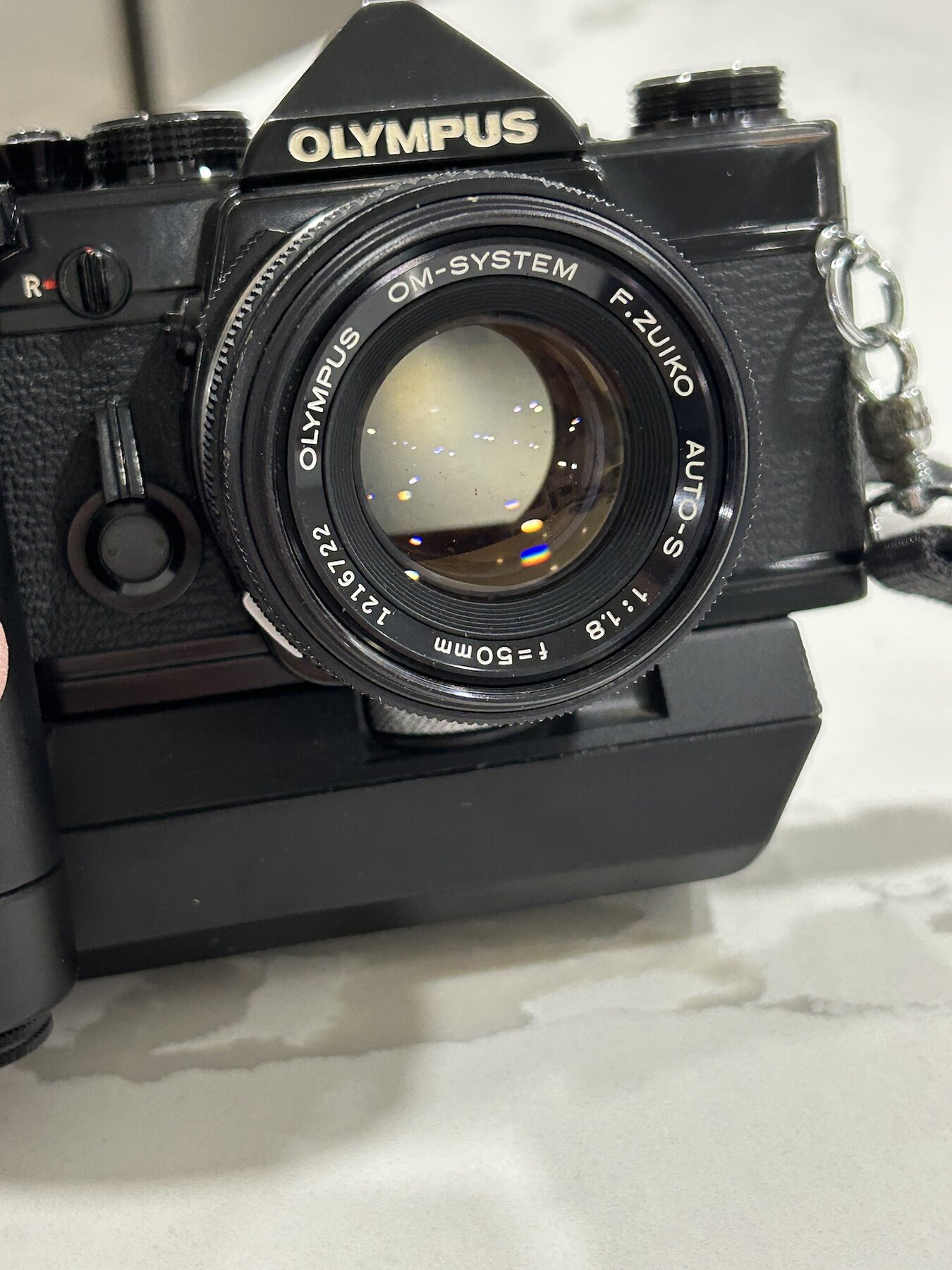 I am selling an OM-1n in very good condition with a the Motor Drive 2 and the standard 50mm F1.8 Zuiko prime. The condition is very good. Black painted SLR bodies tend to get very brassed-up over time, but this one has held up better than most. In fact I think it's a real beauty!
