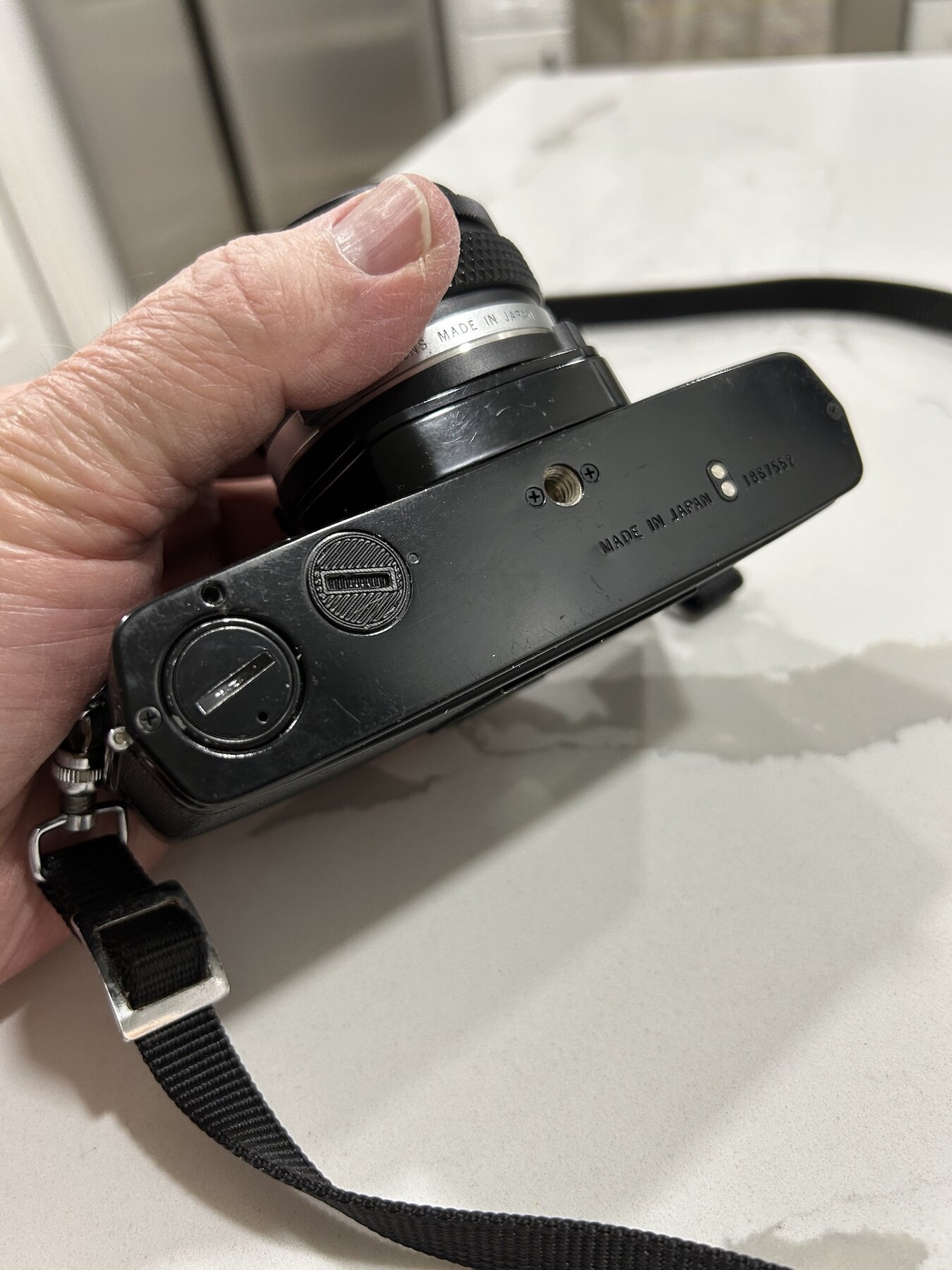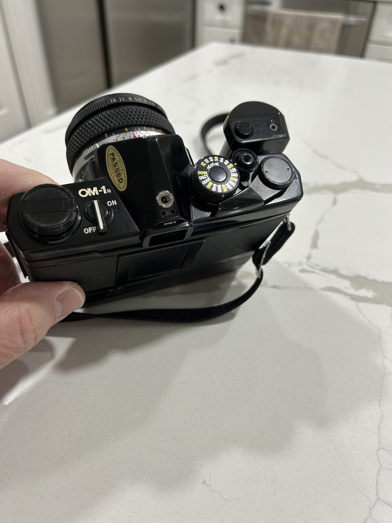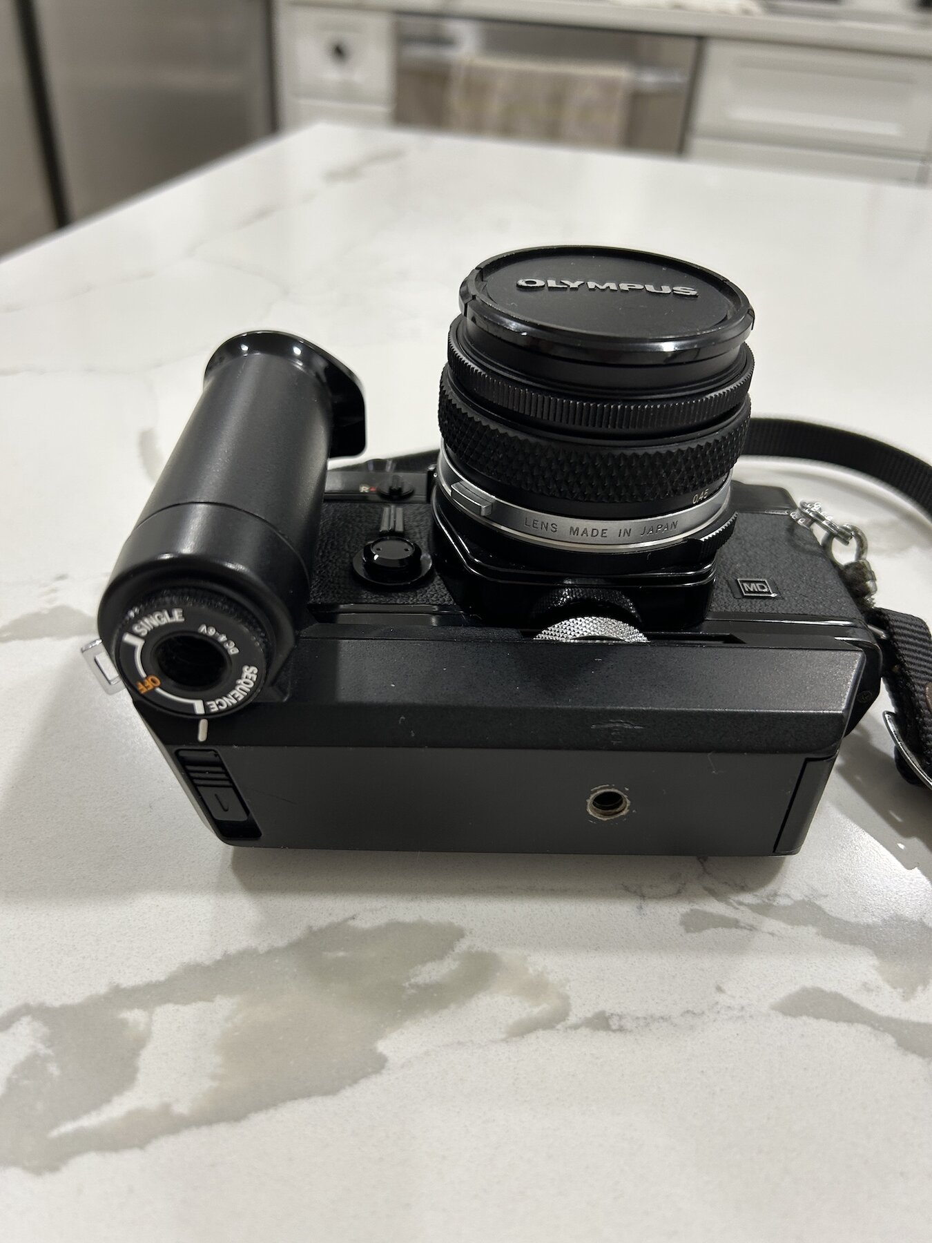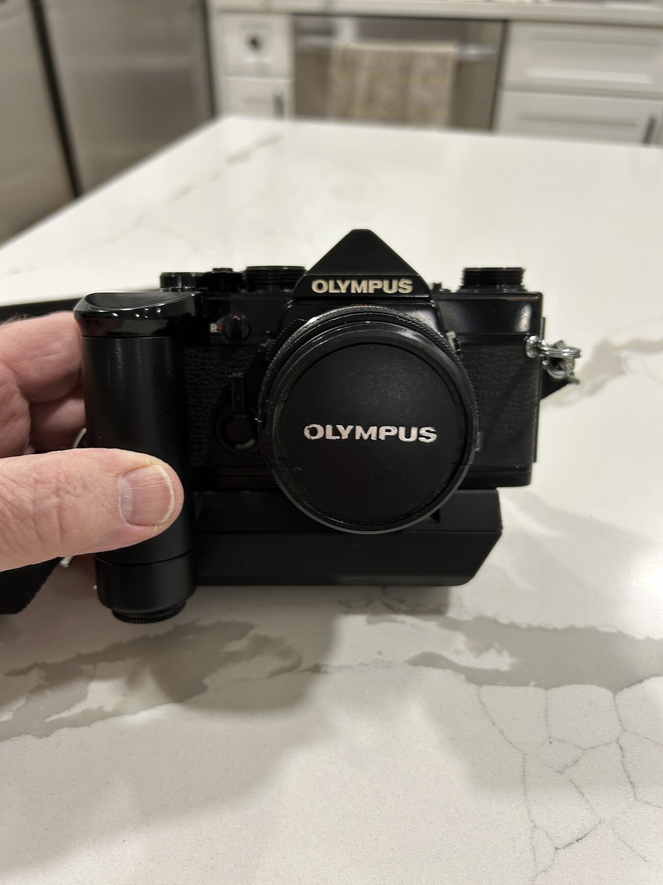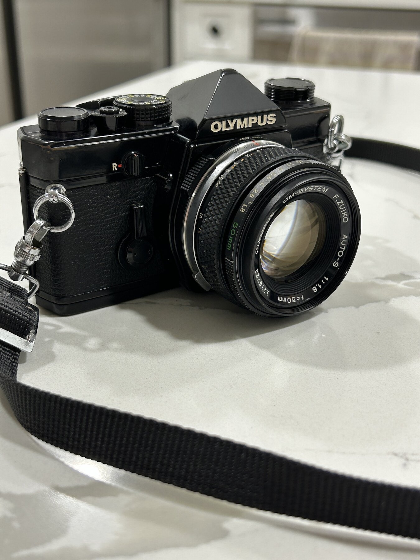 I am selling an OM-1n in very good condition with a the Motor Drive 2 and the standard 50mm F1.8 Zuiko prime. The condition is very good. Black painted SLR bodies tend to get very brassed-up over time, but this one has held up better than most. In fact I think it's a real beauty!