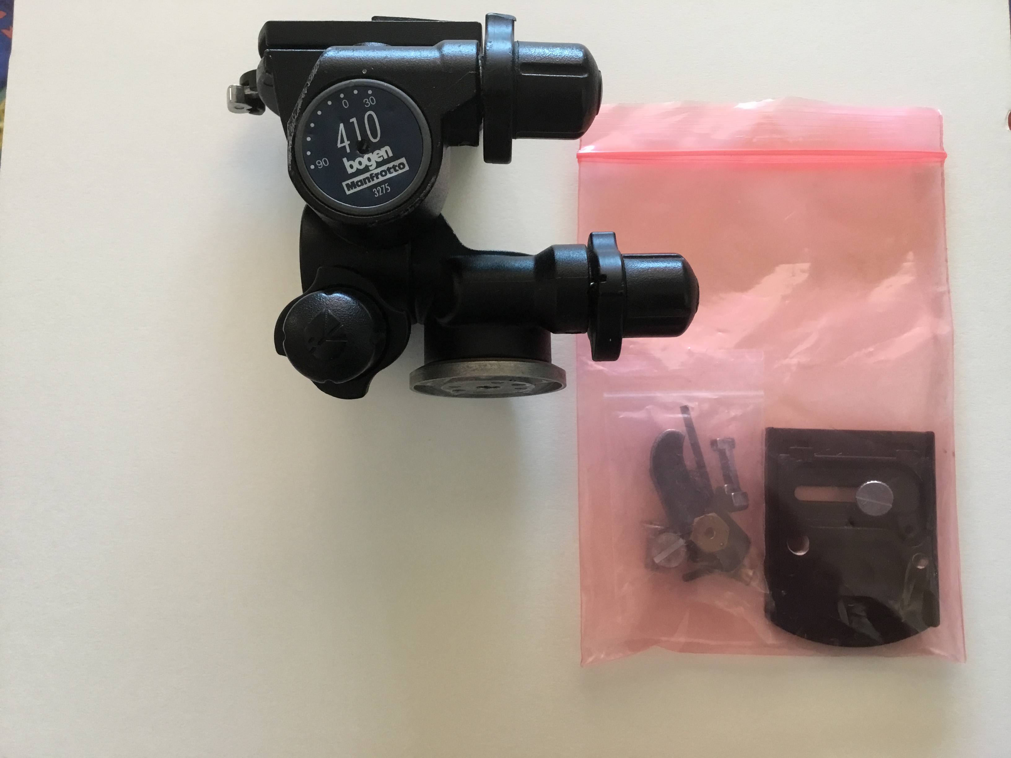 Older model 410 head in working condition. Cosmetic worn area from use (see pics). Includes spare original release parts kit purchased from Manfrotto/Bogen which I installed. Parts included in photo are the old replaced parts. PM with questions, etc.