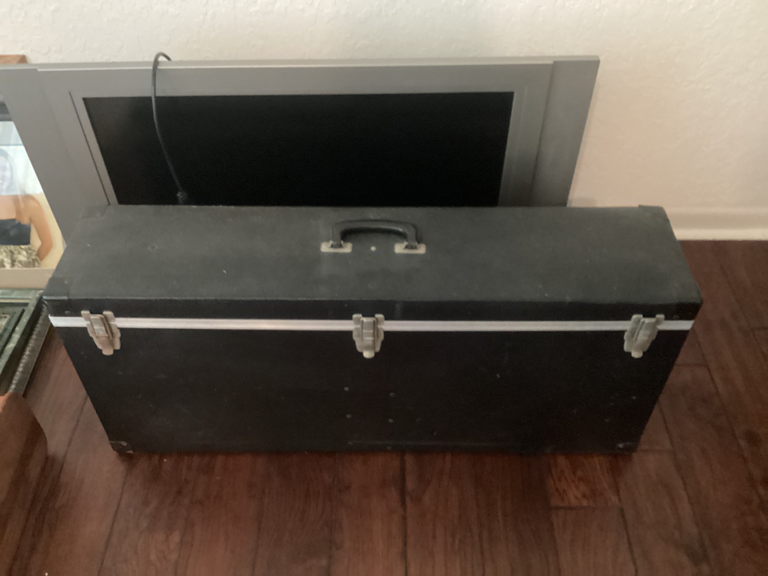 The case measures about 36x14x9 inches and weighs about 25 lb I’m guessing.