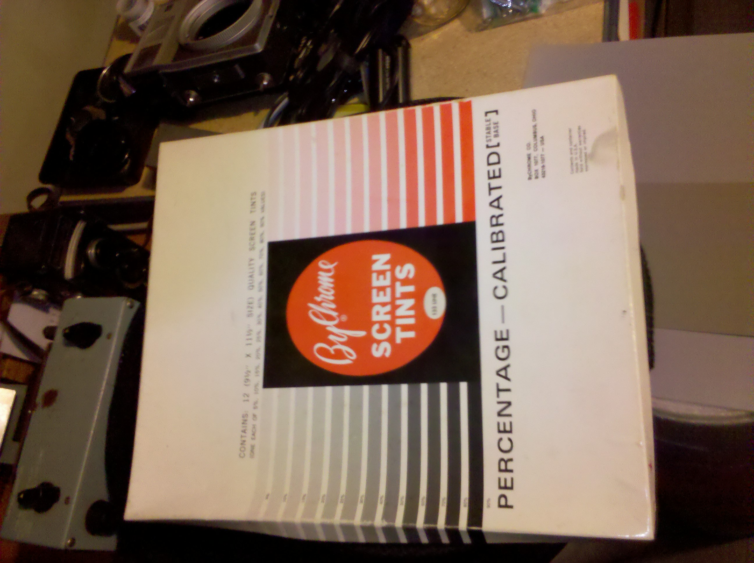 If you want to give me a half tone screen for the cost of postage to OZ I will pleased to help you in your dilemma - However, I can't read the labels on your boxes from your digisnaps, but one of the boxes labeled "Kodak Gray contact screen (negative) 133 Line" might be right, I will go into the darkroom and see how my dirty one is labeled - Hang on, I will be back very soon