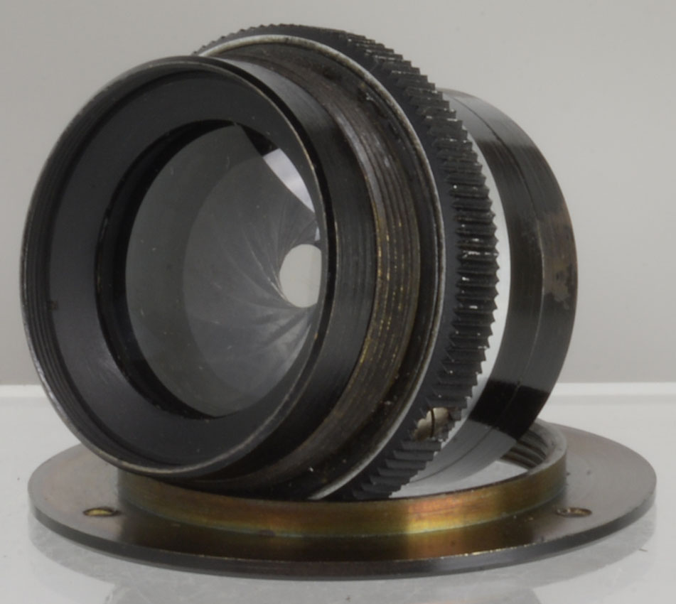 symmetrical optical design (6 elements, 2 groups), it is a convertible lens: if the the frontal element is unscrewed, the lens gives double focal length and increased coverage