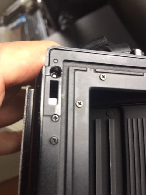 10. I cleaned the pin on the film back which extends when the dark slide is inserted and it seems free