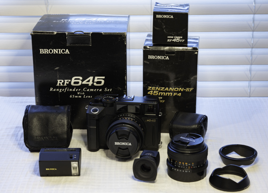 I’m offering my Bronica RF645 kit with 2 lenses, viewfinder and speedlight.