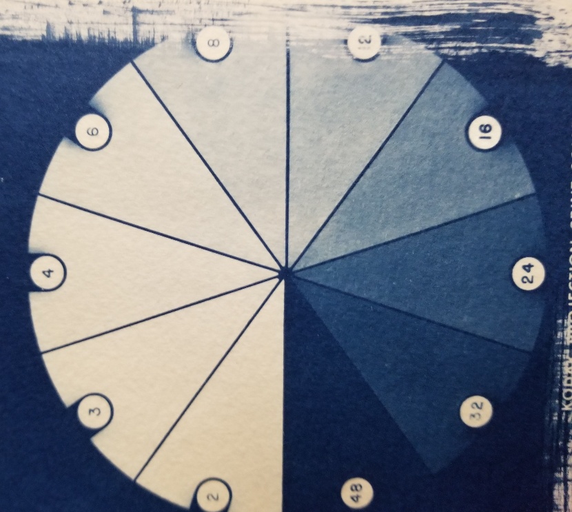 Finally, I suggest that a controlled test for the correct exposure be done without any objects on top so you can get an idea what exactly is going on. If you do not have a step-wedge that was shown by hol571, you can use a simple test-strip method that is used in the darkroom, exposing different times on the same piece of paper to get at what is called "minimum exposure for maximum density." Your exposure time might be in minutes and you might be playing in hours. Too much exposure can also decrease the blue density - above a certain level. Exposure times will also differ depending on the time of the day and whether it is cloudy or clear. So that's an another variable to be kept an eye on.