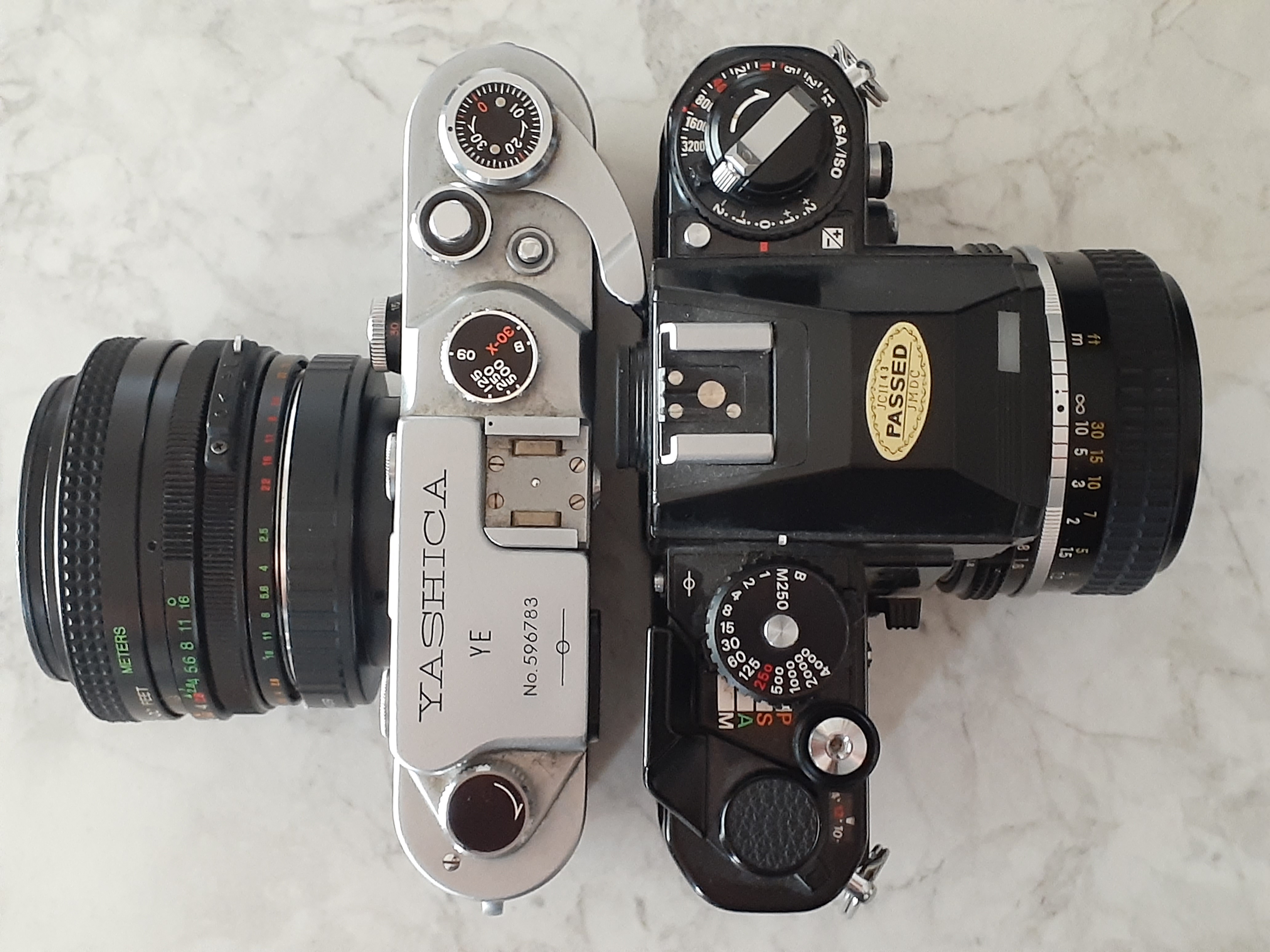 For comparison, there is hardly a weight or size advantage if I were to choose this setup over a Nikon FA with the same lens. The YE is 800 grams and the FA is 866 grams. The FA is a bit taller but nearly identical in width and depth.