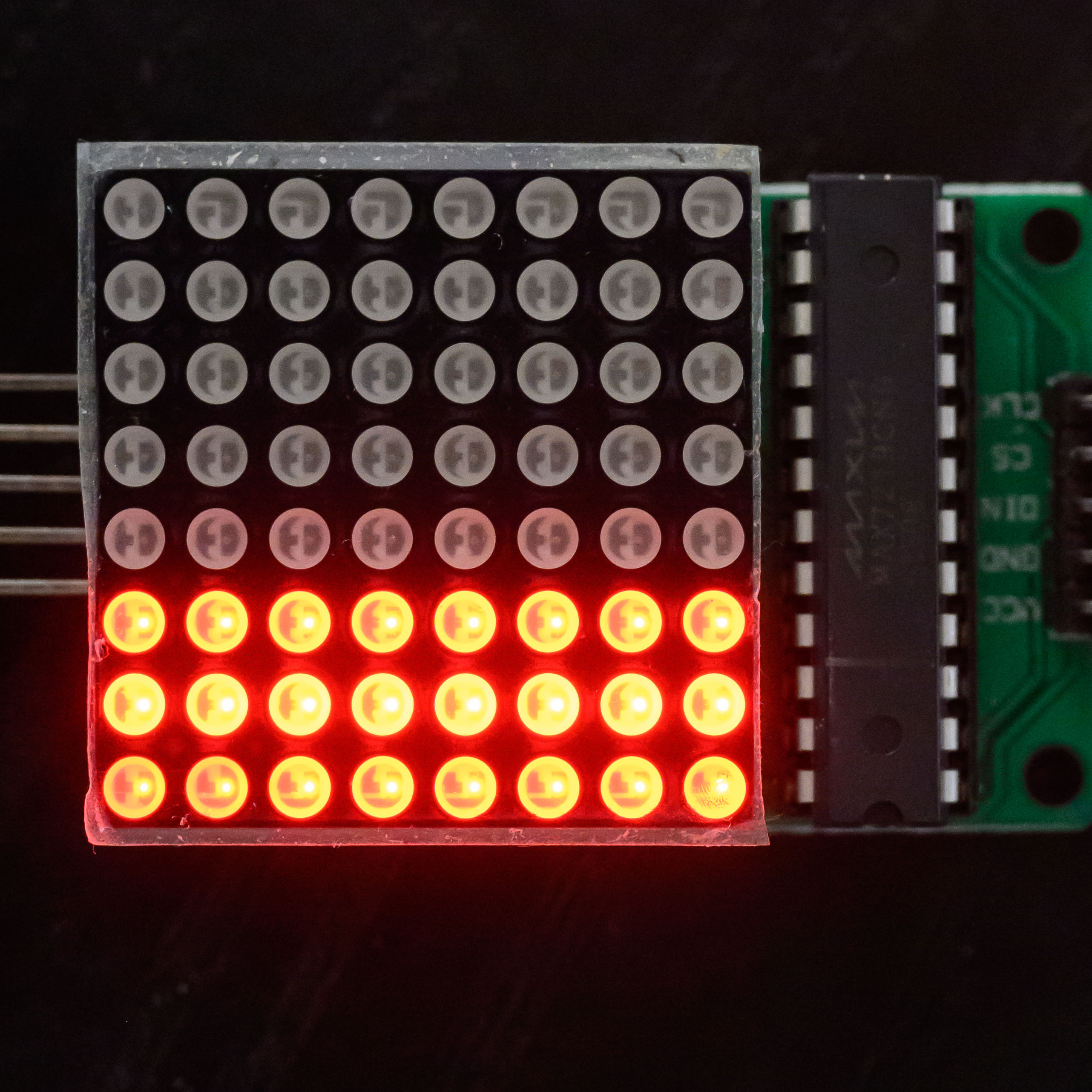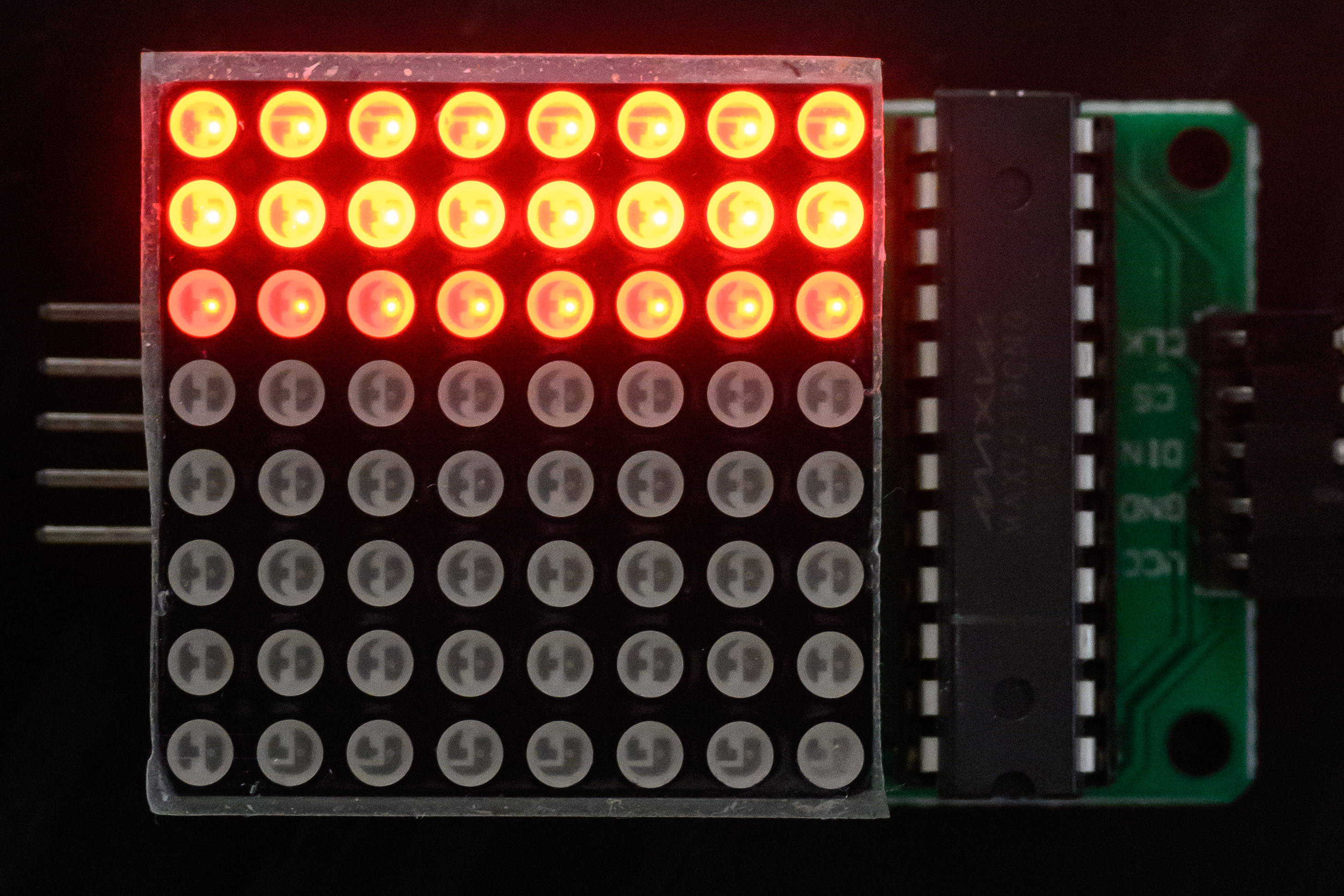 and moving the LEDs to run at 1/500s, we are back to seeing three rows of LEDs as the camera shutter is at 1/250s, thus running slow.